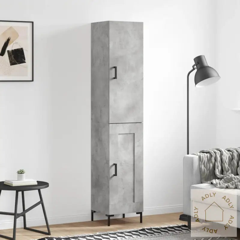 Skruer og plugger for montering mot vegg følger ikke med. Vi anbefaler å bruke skruer og plugger som passer til akkurat dine vegger. Er du usikker på hvordan du gjør dette, bør du ta kontakt med en fagperson. Følg alltid hver del i monteringsveiledningen nøye.Farge: betonggrå – et moderne og allsidig valg som passer til mange typer interiør og andre møbler til hjemmet.Materialer: konstruert tre og metall – designet for å vare lenge, og enkelt å vedlikeholde.Samlet mål: 34,5 x 34 x 90 cm (B x D x H) – en kompakt og praktisk størrelse som tar liten plass, men gir mye lagringskapasitet.Mål skjenk: 34,5 x 34 x 90 cm (B x D x H)Mål highboardtopp: 34,5 x 34 x 90 cm (B x D x H)Montering kreves: ja – alt du trenger av deler og enkel bruksanvisning følger med.Leveransen inneholder:1 x skjenk1 x topp for highboardLegal Documents: