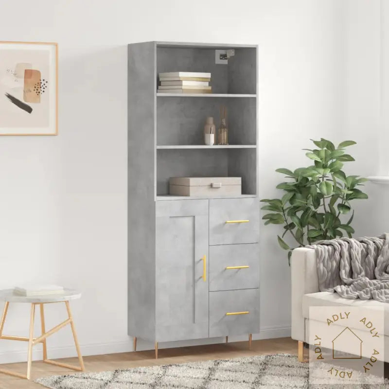 Skruer og plugger til veggmontering følger ikke med, så sørg for å finne passende festemidler til nettopp din veggtype. Ta gjerne kontakt med fagfolk hvis du er usikker, og følg instruksjonene nøye for trygg montering.Farge: BetonggråMaterialer: Konstruert tre, metallSamlet mål: 69,5 x 34 x 180 cm (B x D x H)Mål skjenk: 69,5 x 34 x 90 cm (B x D x H)Mål topp for highboard: 69,5 x 32,5 x 90 cm (B x D x H)Montering kreves: JaLeveransen inneholder:1 x skjenk1 x topp for highboardLegal Documents:
