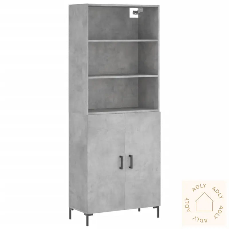 Skruer og plugger til veggmontering følger ikke med. Velg festemateriell som passer akkurat din veggtype. Spør gjerne en fagperson ved tvil. Følg alltid instruksjonene nøye under montering.Farge: betonggråMaterialer: konstruert tre, metallSamlet mål: 69,5 x 34 x 180 cm (B x D x H)Mål skjenk: 69,5 x 34 x 90 cm (B x D x H)Mål topp for highboard: 69,5 x 32,5 x 90 cm (B x D x H)Montering kreves: jaLeveransen inneholder:1 x skjenk1 x topp for highboardLegal Documents: