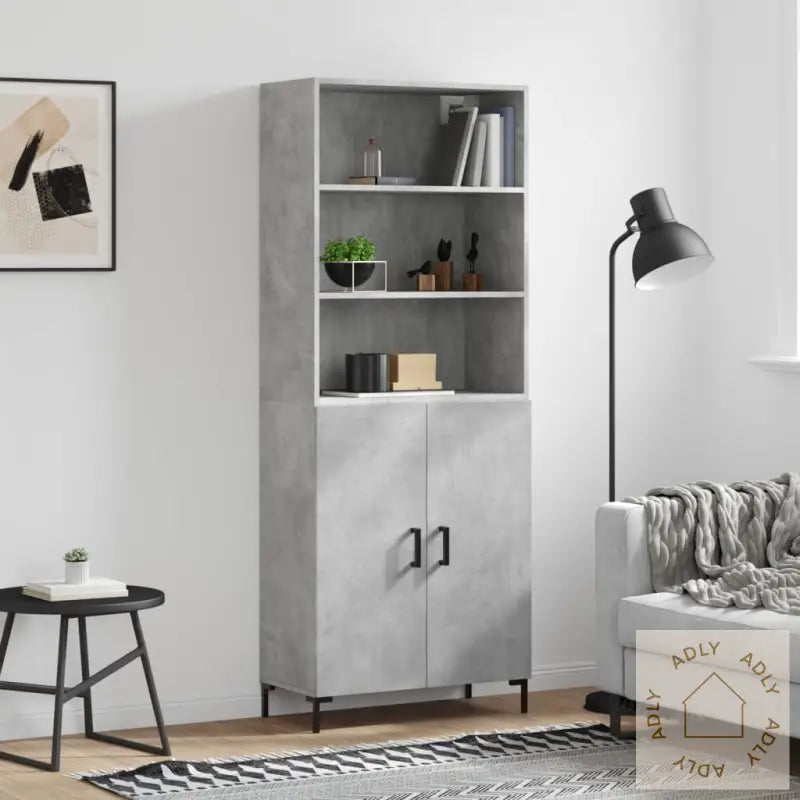 Slitesterkt materiale: Det konstruerte treverket av høy kvalitet sørger for en jevn, fin overflate. Materialet gir samtidig styrke, god stabilitet og tåler fuktighet – perfekt for daglig bruk i hjemmet.Rikelig med lagringsplass: Highboardet tilbyr mange romslige hyller og skap slik at dine nødvendigheter, dekorasjoner eller favorittbøker alltid er pene, organiserte og lette å få tak i. Dette gjør denne løsningen ideell for deg som ser etter praktiske bokhyller og stående hyller med mer oppbevaringsmuligheter.Praktisk dør: Gjør det enkelt å holde området ryddig med dører som skjuler både småting og rot bak et lekkert ytre.Metallføtter: De solide metallføttene gir ikke bare ekstra stabilitet, men også en moderne touch som passer rett inn sammen med andre trendy møbler eller hagemøbler.Dette oppbevaringsskapet kombinerer moderne design og funksjonalitet, perfekt til deg som ønsker smarte og elegante møbler til hjemmet.