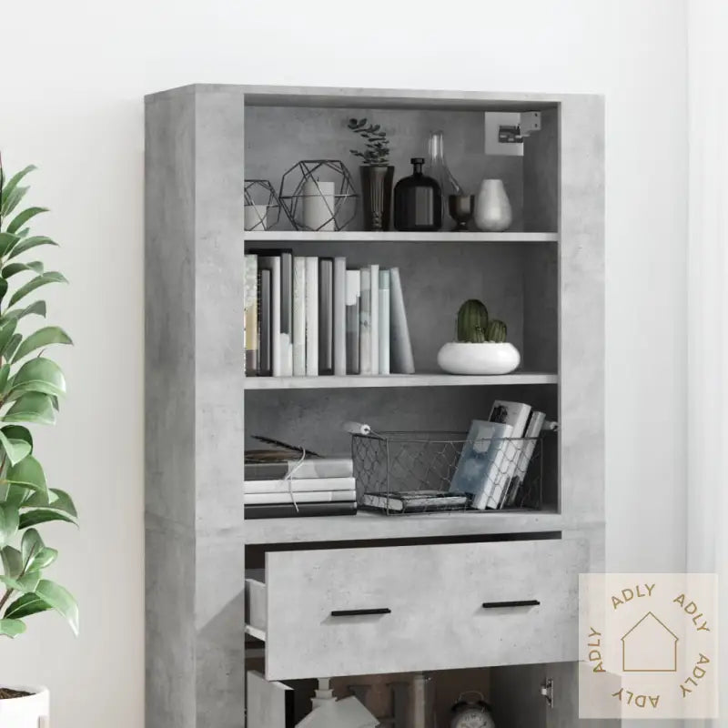 - Slitesterkt materiale: Skapet er laget av høykvalitets konstruert tre, kjent for sin jevne overflate, solide struktur og gode motstand mot fuktighet. Dette sikrer at highboardet holder seg pent lenge, selv ved daglig bruk.