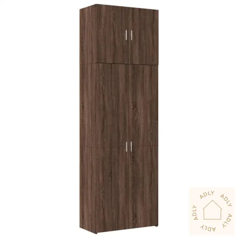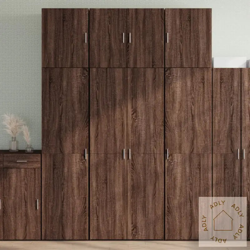 Holdbart materiale: Det konstruerte treverket i brun eik har høy kvalitet, og gir en glatt og robust overflate som tåler daglig bruk. Materialet er både sterkt, stabilt og motstandsdyktig mot fuktighet, noe som gjør dette skapet perfekt for ulike rom.Enkelt å bruke: Skapet er utstyrt med stilige håndtak som gjør det enkelt å åpne og lukke dørene. Samtidig tilfører håndtakene en ekstra touch av eleganse som kler enhver interiørstil.God oppbevaringsplass: Du får både åpne hyller og lukkede skapdører, så du kan sette fram dekor eller hagemøbler-tilbehør samtidig som du holder styr på ting du ønsker å skjule. Rikelig med plass gjør det enkelt å holde alt organisert og lett tilgjengelig.Enkelt vedlikehold: Den glatte overflaten i brun eik er lett å holde ren. Bare tørk over med en fuktig klut ved behov, og skapet ser alltid innbydende ut uten mye arbeid.Allsidig bruk: Det tidløse designet gjør at highboardet passer like godt på soverommet, i stuen, gangen eller til og med på hjemmekontoret eller garasjen. Dette gir deg stor fleksibilitet, uansett hvor du ønsker å plassere dine nye møbler.Advarsel: