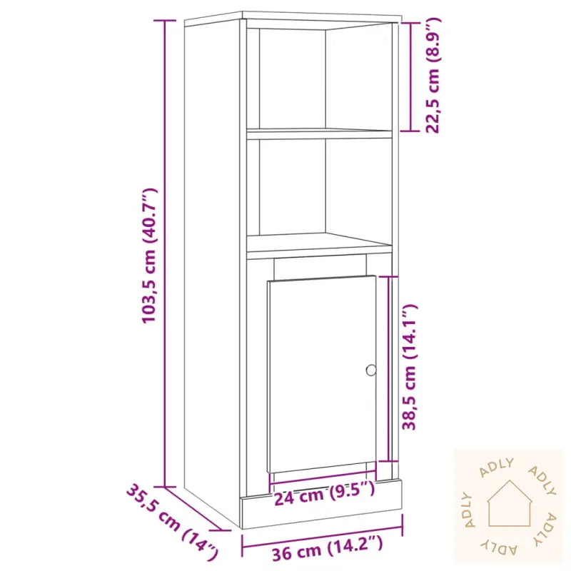 Stabilt og slitesterkt materiale: Highboardet er laget av konstruert tre, noe som gjør det robust og holdbart over tid. Dette materialet tåler daglig bruk godt, har en jevn overflate og motstår både fuktighet, vridning og sprekker. Dermed får du et møbel som holder seg pent – også i hjem med høy aktivitet eller fuktige omgivelser.Rikelig med lagringsplass: Med god innvendig kapasitet gir dette skjenken deg masse plass til å holde orden på alt fra servise til papirer og bøker. Det gjør organiseringen enklere så rommet ditt alltid føles ryddig og oversiktlig, samtidig som favorittgjenstander er lett tilgjengelig.Praktisk dør: Døren skjuler alt smått og sørger for at overflaten alltid ser pen og ryddig ut – perfekt hvis du ønsker et stilrent uttrykk eller vil spare litt tid på hverdagsryddingen. Hold småting unna synet og få et mer harmonisk blikkfang mellom dine møbler.Tidløst design: Med rette linjer og et minimalistisk uttrykk passer skapet flott inn blant forskjellige møbler til hjemmet, enten du liker klassiske detaljer eller moderne utseende. Den nøytrale fargen gir deg store muligheter til å kombinere highboardet med øvrige innredning – fra kjøkken, stue eller soverom, og til hagemøbler hvis du drømmer om et flytende uttrykk mellom inne- og uterom.Advarsel: