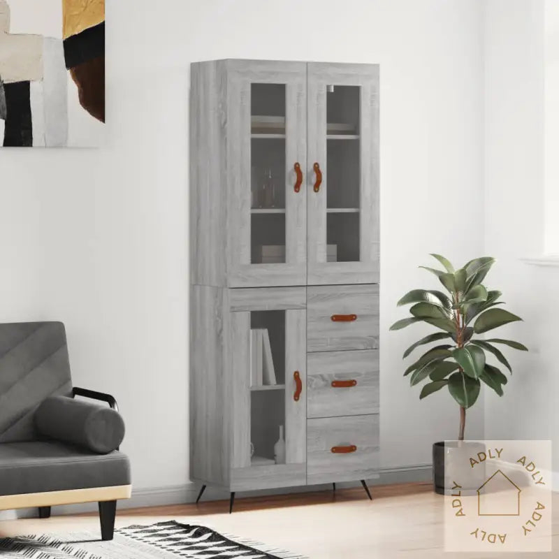 Farge: grå sonomaMaterialer: konstruert tre, metall, glassSamlet mål: 69,5 x 34 x 180 cm (B x D x H)Mål skjenk: 69,5 x 34 x 90 cm (B x D x H)Mål topp for highboard: 69,5 x 34 x 90 cm (B x D x H)Montering kreves: jaLeveransen inneholder:1 x skjenk1 x topp for highboardLegal Documents: