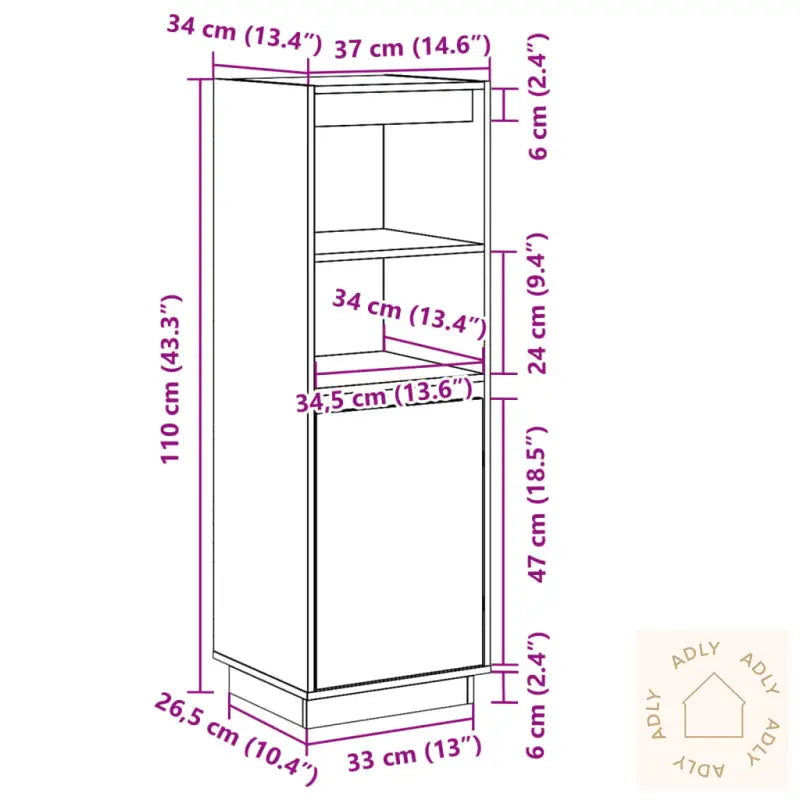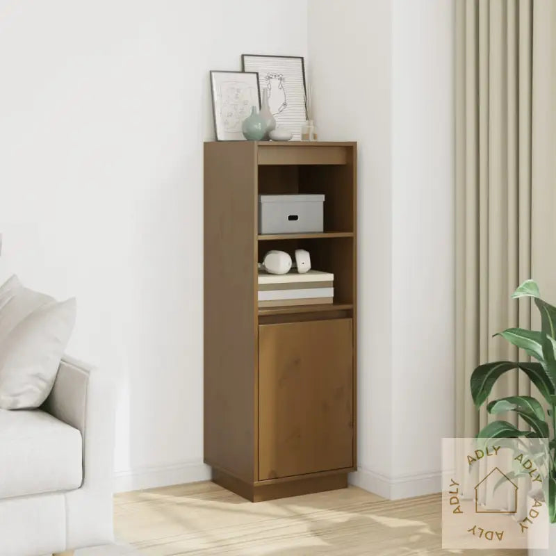 Farge: honningbrunMateriale: heltre furuMål: 37 x 34 x 110 cm (B x D x H)Montering kreves: ja