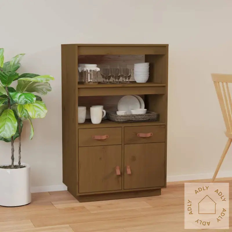 Dette klassiske highboardet i heltre furu er perfekt som møbel til hjemmet, med rikelig og praktisk oppbevaringsplass – samtidig som det gir et pent og naturlig preg til rommet.
