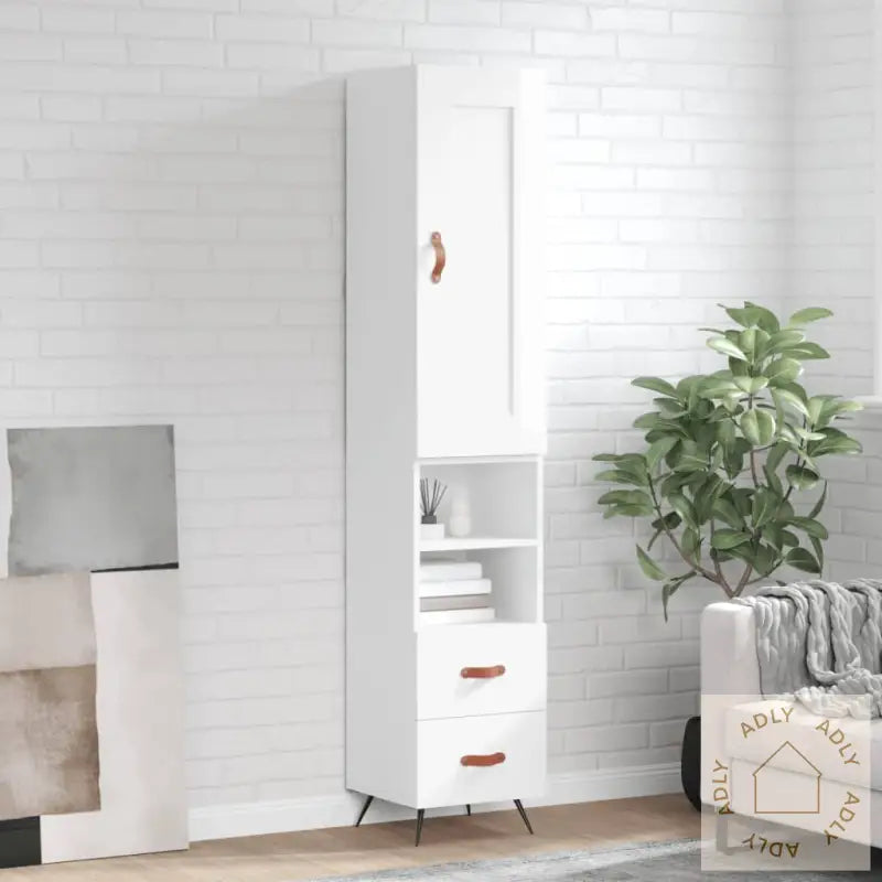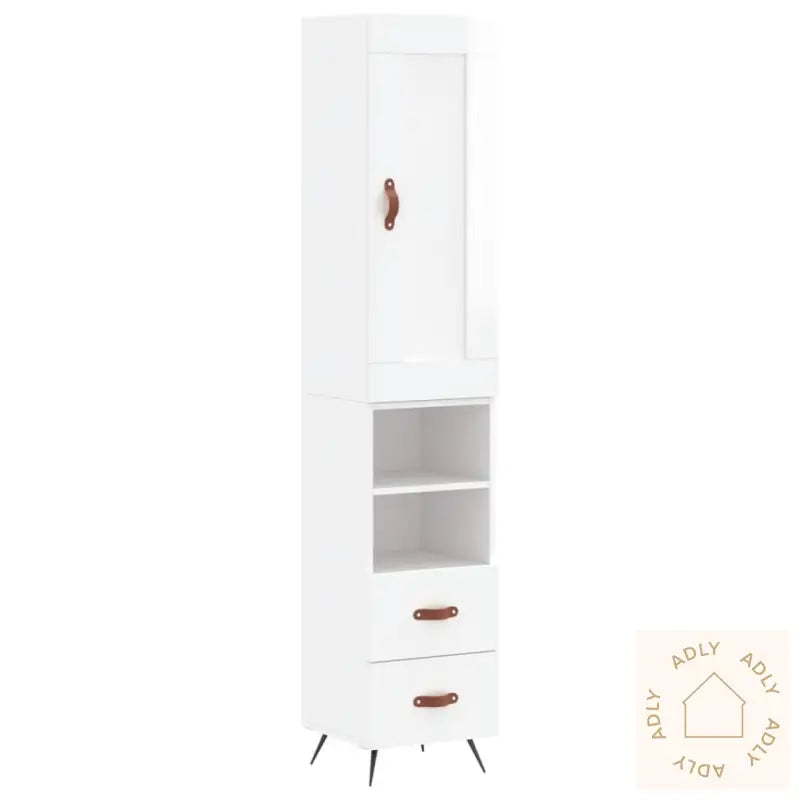 Skruer og plugger til veggmontering følger ikke med. Velg skruer og plugger som passer akkurat til dine vegger. Om du er i tvil, anbefaler vi at du tar kontakt med en fagperson. Husk å lese og følge alle instruksjoner nøye.Farge: Høyglans hvit – en nøytral og elegant nyanse som passer godt inn blant andre møbler eller hagemøbler.Materialer: Konstruert tre, metall, kunstskinnSamlet mål: 34,5 x 34 x 90 cm (B x D x H)Montering krevesLeveransen inneholder:1 x skjenk1 x topp for highboardLegal Documents: