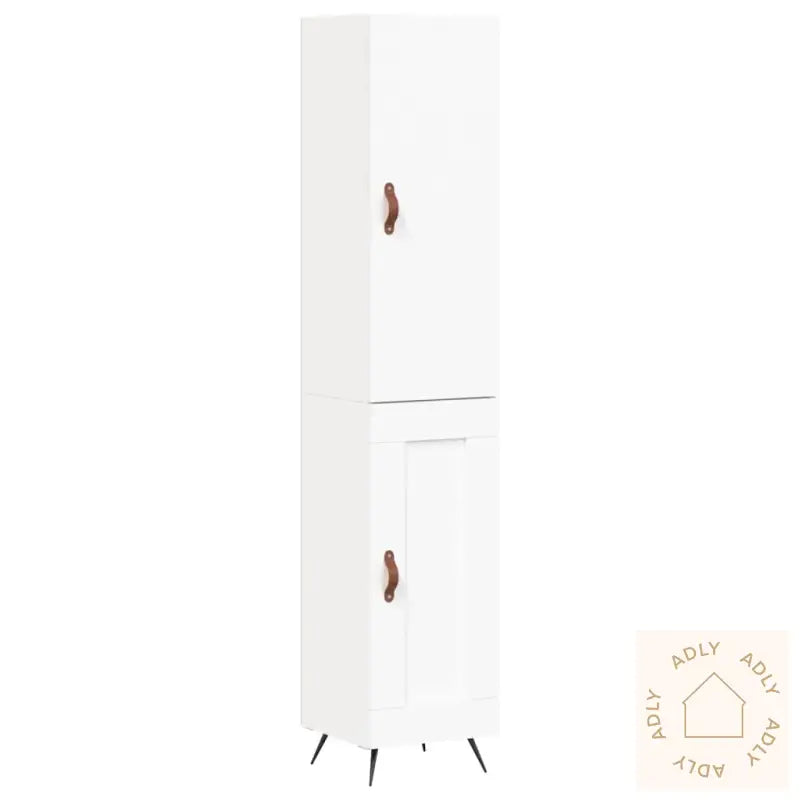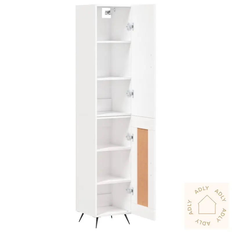 Slitesterkt materiale: Highboardet er laget av konstruert tre av svært god kvalitet og har en glatt overflate. Materialet er solid, stabilt og tåler fuktighet godt, noe som sikrer oppbevaringsmøbler med lang levetid – ideelt til både store og små hjem.God lagringsplass: Skapet rommer flere hyller, og gir deg masse plass til å holde alt fra hverdagslige nødvendigheter til dekor, bøker eller servise pent organisert og innen rekkevidde – smart for deg som vil maksimere lagringsplassen uten at det går på bekostning av stil.Praktiske dører: Hold rot unna og skap et ryddig uttrykk i rommet. De lukkede dørene lar deg enkelt skjule småsaker og viktige ting, og bidrar til at dine møbler ser rene og ryddige ut til enhver tid.Moderne metallføtter: Metallføttene gir highboardet et røft, moderne preg og øker stabiliteten. Samtidig gjør de det enkelt å rengjøre under skapet, slik at du får en praktisk hverdagsløsning.Advarsel:
