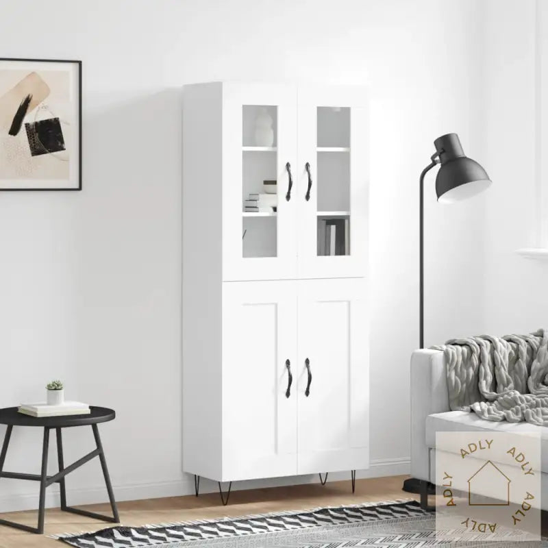 Slitesterkt materiale: Highboardet er laget av konstruert treverk i høy kvalitet, noe som gir en glatt overflate, god stabilitet og ekstra motstand mot fukt, perfekt for deg som ønsker langvarige møbler til hjemmet.Praktisk lagringsplass: Skapet har godt med plass slik at du kan organisere daglige nødvendigheter, dekor eller servise. Hold tingene dine godt samlet, men alltid lett tilgjengelig – ideelt om du ønsker orden og oversikt hjemme.Stilrene metallføtter: Metallføttene gir et moderne og delikat preg til interiøret, samtidig som de sørger for styrke og stabilitet – trygt og praktisk, enten du bruker den sammen med andre møbler eller alene som blikkfang.Advarsel: