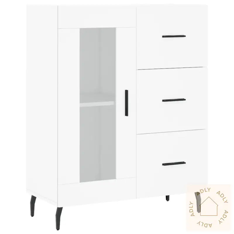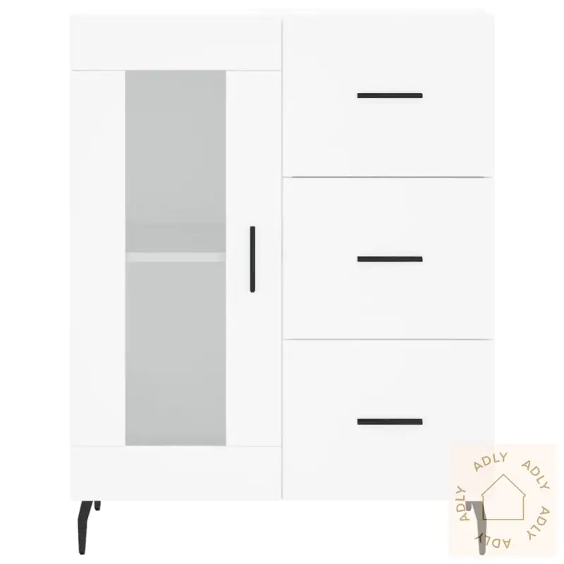 Slitesterkt materiale: Highboardet er laget i konstruert treverk av høy kvalitet som gir en jevn finish og lang holdbarhet. Materialet tåler daglig bruk, er stabilt og motstandsdyktig mot fukt, noe som gir deg møbler du kan stole på.God lagringsplass: Dette skapet har rikelig rom til å organisere bøker, servise, dekorgjenstander eller andre nødvendigheter. Alt får sin faste plass, noe som gjør det enkelt å holde orden i hverdagen.Praktiske dører: Du kan enkelt skjule bort småting bak dørene, slik at rommet holdes ryddig og oversiktlig til enhver tid. Dette gir både et pent uttrykk og ekstra komfort i hverdagen.Stilige metallføtter: Metallføttene gir highboardet en moderne og stilren look, samtidig som de sørger for optimal stabilitet. De løfter designet og passer godt inn sammen med andre møbler og utendørsmøbler.Advarsel: