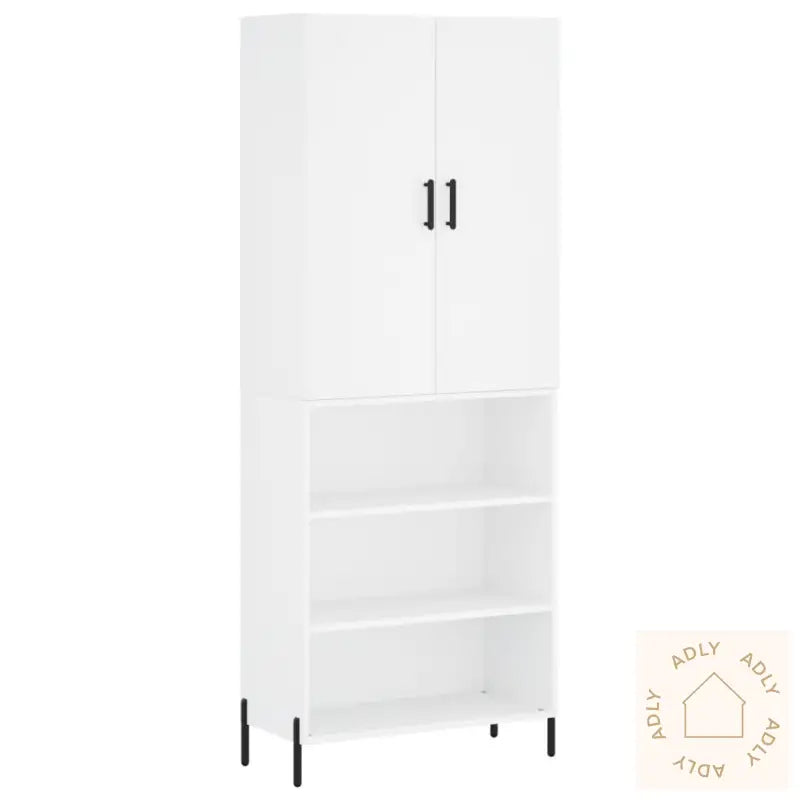 Slitesterkt materiale: Det konstruerte treverket av høy kvalitet gir en jevn og flott overflate, samtidig som det sørger for styrke, stabilitet og god motstand mot fukt. Du får dermed et møbel som står seg godt over tid, uansett hvor du plasserer det i hjemmet.Rikelig med lagringsplass: Highboardet har smarte oppbevaringsløsninger, så du enkelt kan organisere alt fra bøker og interiørdetaljer til små nødvendigheter. Her holder du tingene dine ryddige og lett tilgjengelige – perfekt for en enklere hverdag.Praktiske dører: Med praktiske dører kan du raskt skjule rot og holde stuen, gangen eller soverommet ryddig. Dørene gir også en stilren look og beskytter innholdet mot støv.Metallføtter: De solide metallføttene gir et moderne preg, samtidig som de bidrar til ekstra stabilitet og sikkerhet. Møblene får et lett og luftig uttrykk som passer godt inn i både klassiske og moderne hjem.Advarsel: