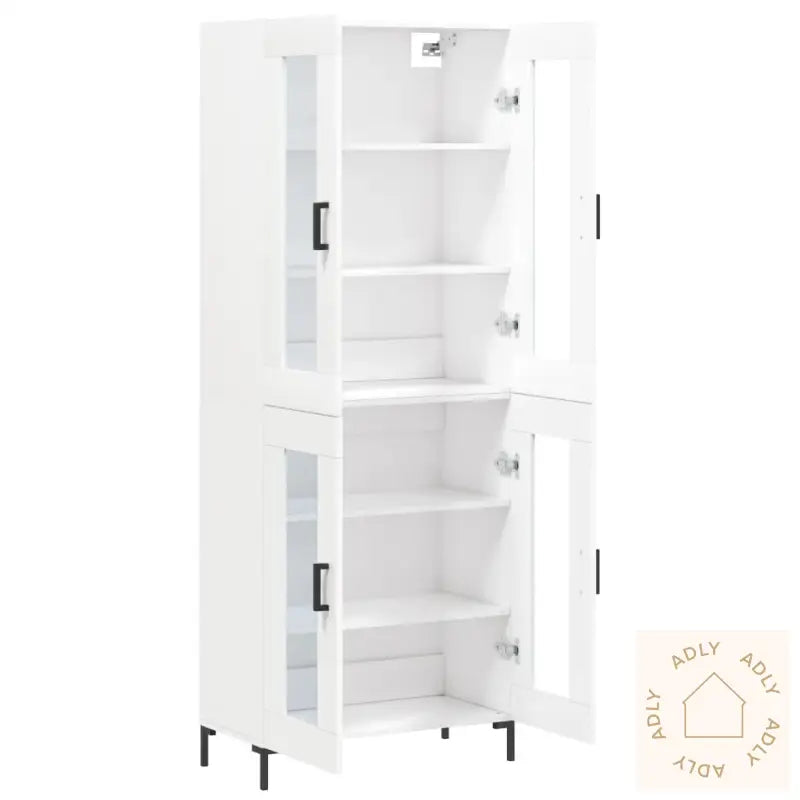 Slitesterkt materiale: Highboardet er laget av konstruert treverk, et solid valg med glatt finish som tåler daglig bruk. Materialet er kjent for styrke, god stabilitet og høy motstandskraft mot fuktighet, noe som gjør dette skapet til en pålitelig del av interiøret ditt over tid.Romslig oppbevaring: Med masse lagringsplass kan du organisere alt fra servise og bøker til småting du vil ha lett tilgjengelig. Et ideelt valg dersom du leter etter bokhyller og stående hyller som kombinerer funksjon med stil.Stødige metallføtter: De robuste metallføttene gir skapet en kul og stilren look, samtidig som de sørger for at møbelet står stabilt på alle slags gulv.Advarsel: