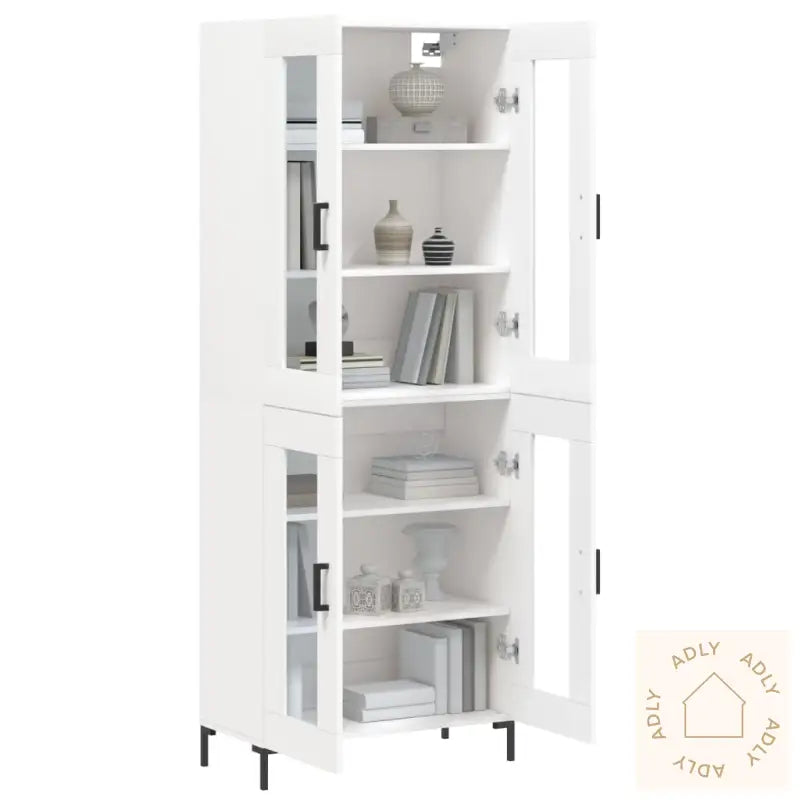 Veggfester (skruer og plugger) følger ikke med. For sikkert og tilpasset oppheng, finn skruer og plugger som passer dine vegger. Er du usikker, ta kontakt med fagfolk. Husk å følge instruksjonene nøye ved montering.Farge: Hvit, en klassisk nyanse som passer inn i de fleste hjem.Materialer: Konstruert tre, glass og metall – gir både solid holdbarhet og et moderne uttrykk.Størrelse totalt: 69,5 x 34 x 180 cm (B x D x H) – romslig uten å ta for mye plass.Skjenk: 69,5 x 34 x 90 cm (B x D x H).Toppdel til highboard: 69,5 x 34 x 90 cm (B x D x H).Montering trengs, men veiledning følger med slik at det er enkelt å sette sammen møbelet hjemme.Dette får du ved levering:1 x skjenk1 x topp til highboardLegal Documents: