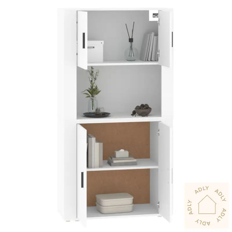 Slitesterkt materiale: Highboardet er laget av konstruert treverk i svært god kvalitet, som gir en glatt overflate og lang levetid. Materialet har innebygd styrke og stabilitet, samtidig som det er motstandsdyktig mot fukt, så dette møbelet tåler godt daglig bruk i ulike miljøer – perfekt for både oppholdsrom og entré.