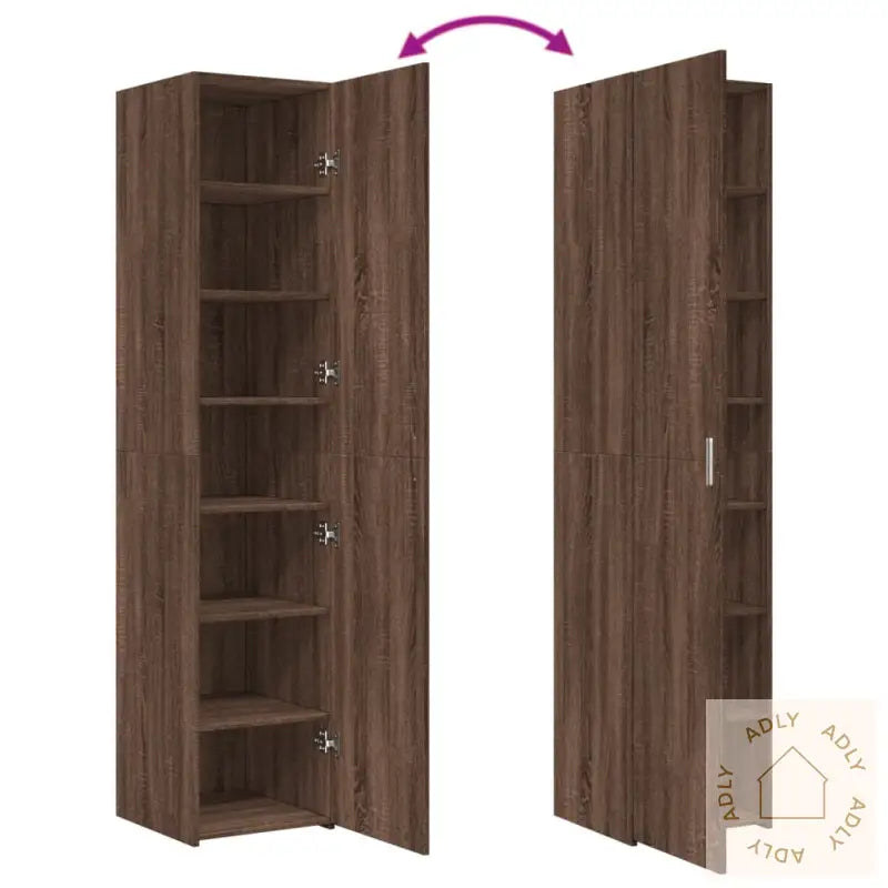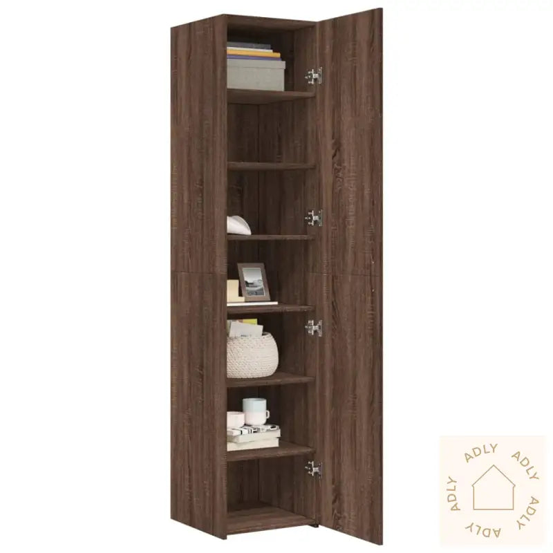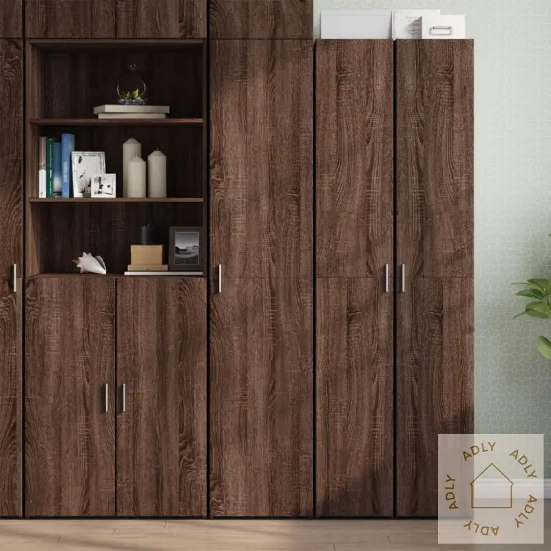 Holdbart materiale: Highboardet er laget av konstruert treverk av høy kvalitet, kjent for sin robuste konstruksjon. Det glatte finishen gjør at det tåler både daglig bruk, fuktighet og holder seg like fint lenge. Dette gjør det til et flott valg blant ulike møbler til hjemmet.Brukervennlig design: Oppbevaringsskapet har håndtak som gjør det enkelt å åpne og lukke. I tillegg gir de stilsikre detaljene skapet et ekstra estetisk løft.God oppbevaringsplass: Med åpne hyller og lukkede dører har du god plass til å organisere alt fra bøker og pyntegjenstander til servise og annet interiør, slik at alt er lett tilgjengelig og ryddig.Enkelt å vedlikeholde: Den glatte overflaten gjør rengjøringen lekende lett – bare tørk over med en fuktig klut. Highboardet krever minimalt vedlikehold og passer for et travelt hjem.Allsidig bruk: Dette highboardet i brun eik passer inn i flere rom, enten det er stue, soverom, gang eller til og med i garasjen. Perfekt om du ønsker fleksible møbler til hjemmet som enkelt kan kombineres med dine andre interiørvalg.Advarsel: