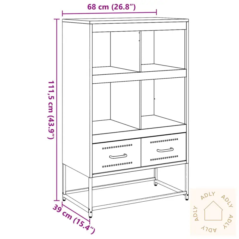 Slitesterkt materiale: Skapet er laget av kaldvalset stål, noe som gir både styrke og lang levetid. Stål er kjent for sin robuste kvalitet og gir dette highboardet ekstra stabilitet, perfekt for deg som vil ha varige møbler til hjemmet eller blant dine bokhyller og stående hyller. Kaldvalsede stålplater har også en jevn og flott overflatefinish samt nøyaktige dimensjoner, noe som gir skapet et pent og profesjonelt uttrykk.Rikelig med oppbevaringsplass: Med fire praktiske rom og to skuffer får du god plass til å organisere magasiner, bøker, fjernkontroller og andre nødvendigheter. Dette gjør det enkelt å holde orden og frigjøre plass på andre møbler eller hagemøbler rundt i huset ditt. Perfekt for deg som ønsker hendig lagringsplass uten å gå på kompromiss med stil.Enkel å vedlikeholde: Highboardet passer bra inn i en travel hverdag, fordi det er lett å rengjøre – bare tørk av med en fuktig klut, så ser det nytt ut. Lite vedlikehold gir deg mer tid til å nyte møblene dine.Advarsel: