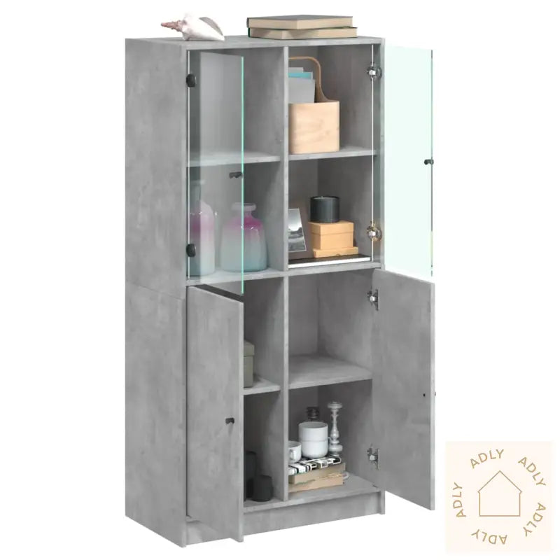 For å forhindre at produktet velter, må det brukes med den medfølgende festeanordningen. Slik sikrer du trygghet om du har barn hjemme eller plasserer skapet i høytrafikkerte rom der flere møbler står samlet.Farge: betonggrå – matcher mange ulike stiler og interiørtrenderMaterialer: konstruert treverk og glassMål: 68 x 37 x 142 cm (B x D x H) – passer godt inn også i mindre romMål rom: 32 x 37 x 32 cm (B x D x H)Antall rom: 8 – gir god sortering og fleksibilitetMontering kreves: ja