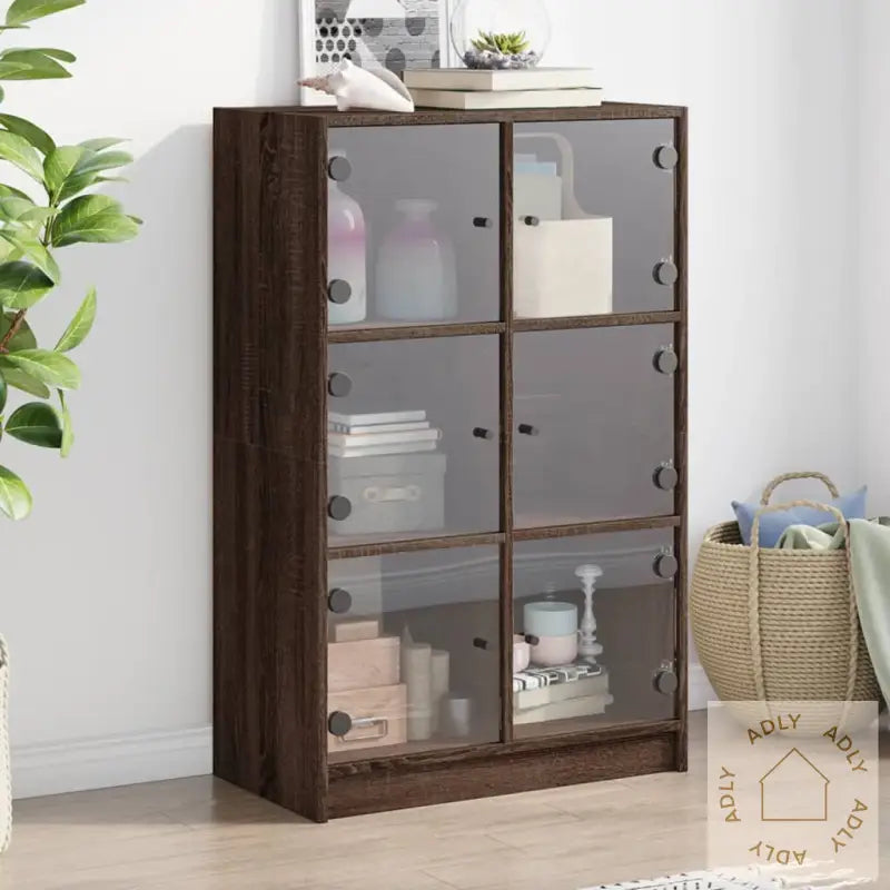 Solid og holdbart materiale: Skapet er laget av konstruert tre i høy kvalitet, noe som gir en jevn, fin overflate samt styrke, stabilitet og god motstand mot fuktighet. Perfekt for langvarig bruk blant dine møbler til hjemmet.Rikelig med oppbevaringsplass: Sideskapet har flere rom, slik at du enkelt får oversikt og plass til bøker, magasiner, dokumenter eller annet du ønsker å holde ryddig og tilgjengelig. Dette gir praktisk lagring selv for større samlinger.Stabil og solid topp: Toppen av skapet er robust og passer perfekt til utstilling av dekorative detaljer – som bilder, blomsterpotter, personlige småting eller andre pyntegjenstander som gjør ditt hjem mer personlig.Praktisk design: Skapet beskytter eiendelene mot støv bak lukene og gjør det lettvint å åpne takket være smidige håndtak. Med seks egne rom holder du alt under kontroll og i system.Advarsel: