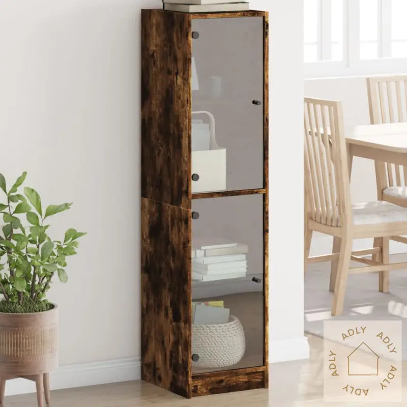 - Praktiske glassdører: Glassdørene gjør det enkelt å vise frem favorittdekor, bilder eller pene serviser, samtidig som du beskytter innholdet mot støv. Alt du ikke vil ha synlig, kan enkelt skjules bak dørene, så du får et ryddig uttrykk uten å ofre stilen.