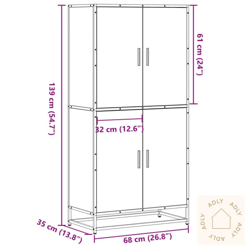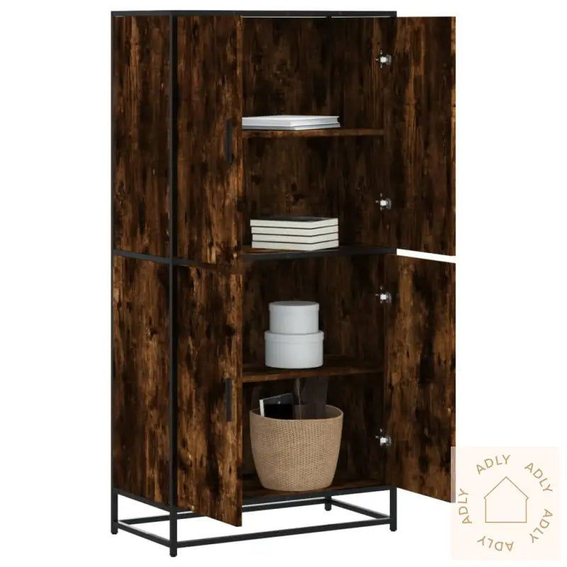 Stabilt og slitesterkt materiale: Skapet er laget av konstruert tre, et materiale som er kjent for både slitestyrke, stabilitet og en jevn overflate. Dette gjør det motstandsdyktig mot fuktighet, vridning og sprekker, så du får et møbel som tåler daglig bruk lenge.Solid ramme for langvarig bruk: Metallrammen gir skapet en trendy, industriell stil og sikrer at strukturen holder seg stødig over tid. Den solide rammen gir ekstra holdbarhet og god beskyttelse mot korrosjon, så du slipper å bekymre deg for slitasje.God lagringsplass: Highboardet har praktiske skapdører med fire rom bak, som gir rikelig med lagringsplass til alt av daglige nødvendigheter. Enten det er bøker, servise eller personlige eiendeler, holder du tingene dine oversiktlig og lett tilgjengelig.Allsidig bruk i hele hjemmet: Dette oppbevaringsskapet er utrolig fleksibelt blant møbler og kan brukes overalt – fra soverom til gang og stue, alt etter hvor du trenger ekstra plass eller et dekorativt løft.Enkel rengjøring: Takket være den glatte overflaten er hyllen enkel å holde ren. En fuktig klut er nok, og du slipper tungvint vedlikehold – praktisk i en hektisk hverdag.Advarsel: