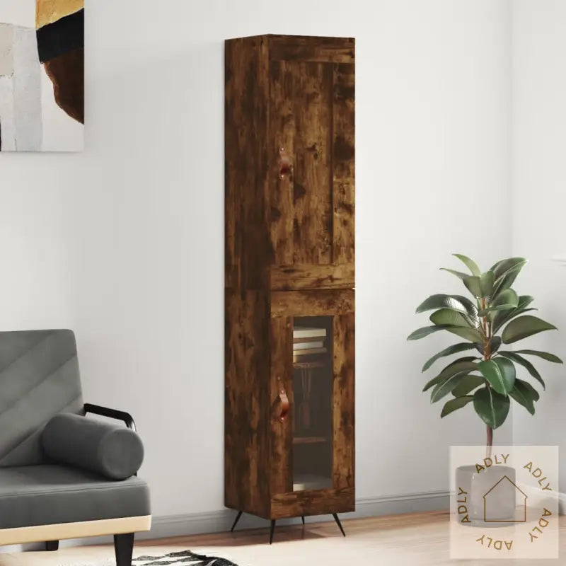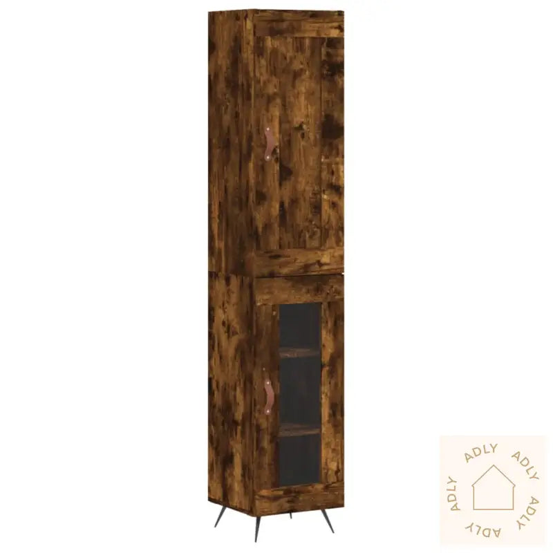 Slitesterkt materiale: Highboardet er laget av konstruert tre av høy kvalitet, noe som gir det en jevn overflate og lang levetid. Dette materialet er kjent for sin styrke, stabilitet og motstandsdyktighet mot fukt – ideelt for møbler til hjemmet som skal tåle daglig bruk.Rikelig med lagringsplass: Med god oppbevaringsplass holder du enkelt orden på alt fra servise og bøker til hverdagslige nødvendigheter. Sideskapet gjør det lett å samle småting på ett sted, samtidig som du får mer luft og ryddighet i rommet.Praktiske dører: Skjul enkelt mindre gjenstander bak dørene for å holde hjemmet ryddig. Glassdøren gir et flott innblikk til dine favoritter – som pynt, bøker eller designgjenstander – og gjør det lettere å finne frem.Metallføtter: De solide metallføttene sørger for at skapet står stødig, samtidig som de tilfører et moderne preg som matcher mange ulike typer møbler, også hagemøbler om du ønsker et helhetlig uttrykk inne og ute.Advarsel: