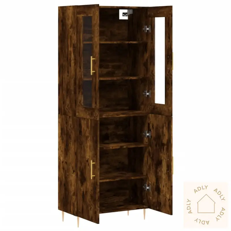 Slitesterkt materiale: Highboardet er laget av konstruert tre av høy kvalitet, kjent for sin glatte finish og styrke. Materialet gir ikke bare stabilitet, men gjør også møbelet motstandsdyktig mot fuktighet – ideelt både i stue og andre rom der slitestyrke er viktig.God lagringsplass: Med smarte skap og hyller får du rikelig med plass til å organisere alt fra servise og bøker til mindre hverdagsartikler. Du får orden på tingene samtidig som det gir hjemmet et ryddig inntrykk.Praktiske dører: Oppbevar småting skjult bak dørene, og hold rommet pent og oversiktlig. De skjulte løsninger gjør det lett å holde orden uten synlig rot.Metallføtter: De robuste metallføttene understreker et kult og moderne uttrykk, samtidig som de gir ekstra stabilitet til hele highboardet. Perfekt for deg som vil investere i holdbare møbler.Advarsel: