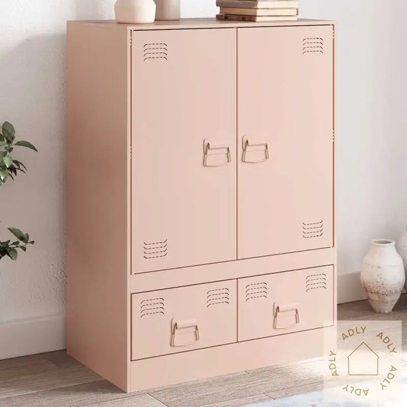 For å forhindre at produktet velter, anbefales det å sikre highboardet til veggen med passende festeanordninger (ikke inkludert).Farge: RosaMateriale: kaldvalset stålMål: 67 x 39 x 95 cm (B x D x H)Maksimal lastekapasitet: 76 kgMed 2 dørerMed 2 skufferMed 4 metallhåndtakMontering kreves: jaLegal Documents: