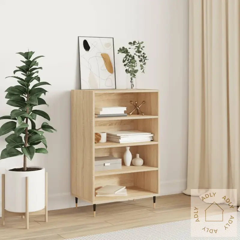 Slitesterkt materiale: Med konstruert tre i høy kvalitet får du et skap med jevn overflate, god styrke, stabilitet og motstandsdyktighet mot fukt. Materialet sørger for lang brukstid og lite vedlikehold – ideelt for et aktivt hjem.Rikelig med lagringsplass: Denne skjenken har smarte hyller som gir deg masse plass til å organisere alle dine daglige nødvendigheter. Hold sortimentet ditt oversiktlig enten det er servise, bøker, eller dekorative elementer – alt er lett tilgjengelig.Utstillingsmuligheter: Toppen av oppbevaringsskapet er perfekt for å vise frem favorittbilder, pynt eller friske blomster. Personliggjør rommet og gi interiøret ekstra karakter med dine utvalgte dekorelementer. Passer like fint sammen med både bokhyller og stående hyller.Metallføtter: De stilige metallføttene gir skapet et moderne uttrykk og sørger for at det står stødig og stabilt, uansett hvilket rom du setter det i.Viktig sikkerhetsinfo: