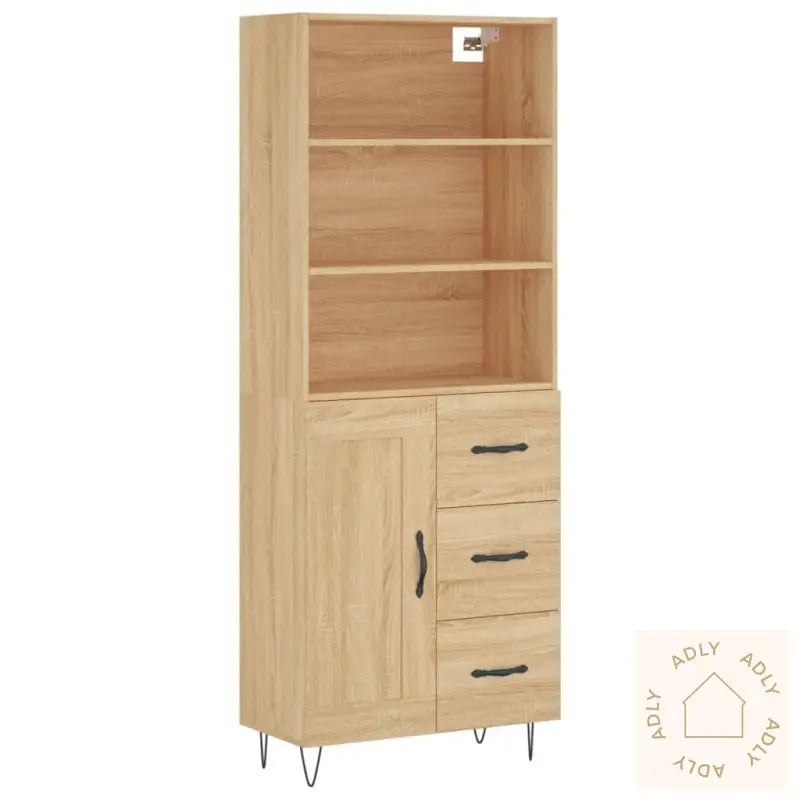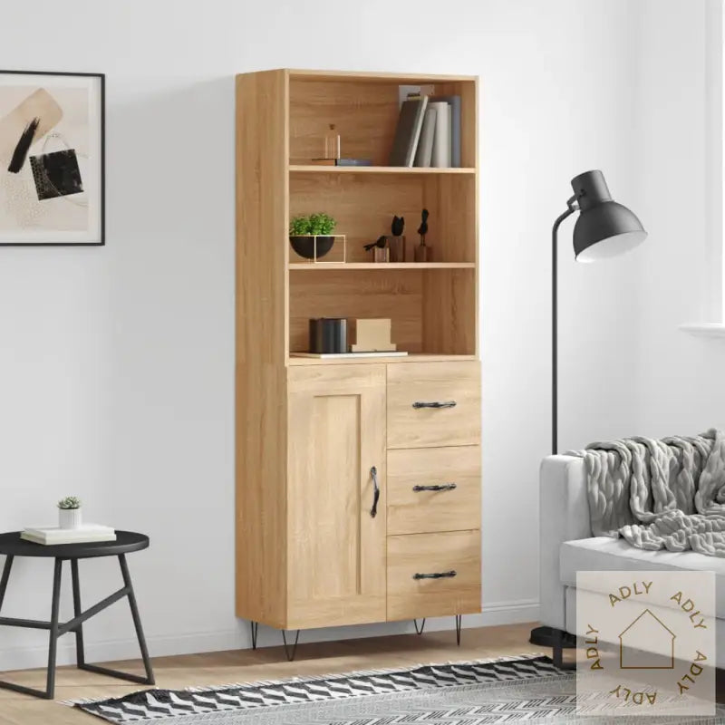 Er du på jakt etter et stilig highboard? Dette highboardet gir hjemmet ditt en elegant sjarm og løfter interiøret ditt med et moderne uttrykk i sonoma eik. Perfekt som en del av dine møbler til hjemmet, gir det både funksjonalitet og design på samme tid.