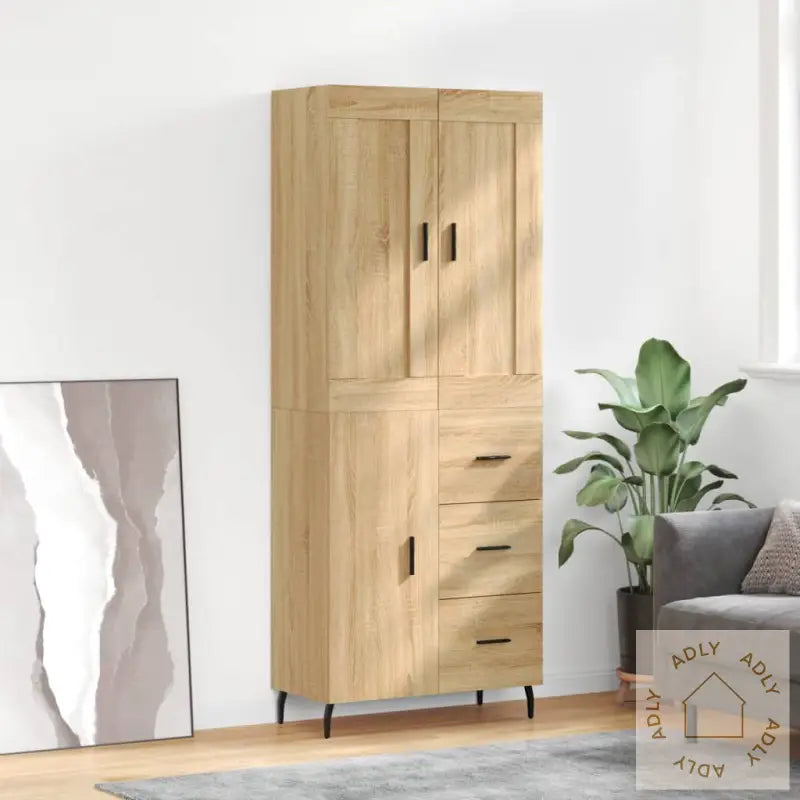 - Metallføtter: De solide metallføttene gir ikke bare ekstra stabilitet, men tilfører også en moderne touch til sonoma eik-designet. Dette gir en spennende kontrast, og gjør at highboardet passer inn i mange ulike interiørstiler.