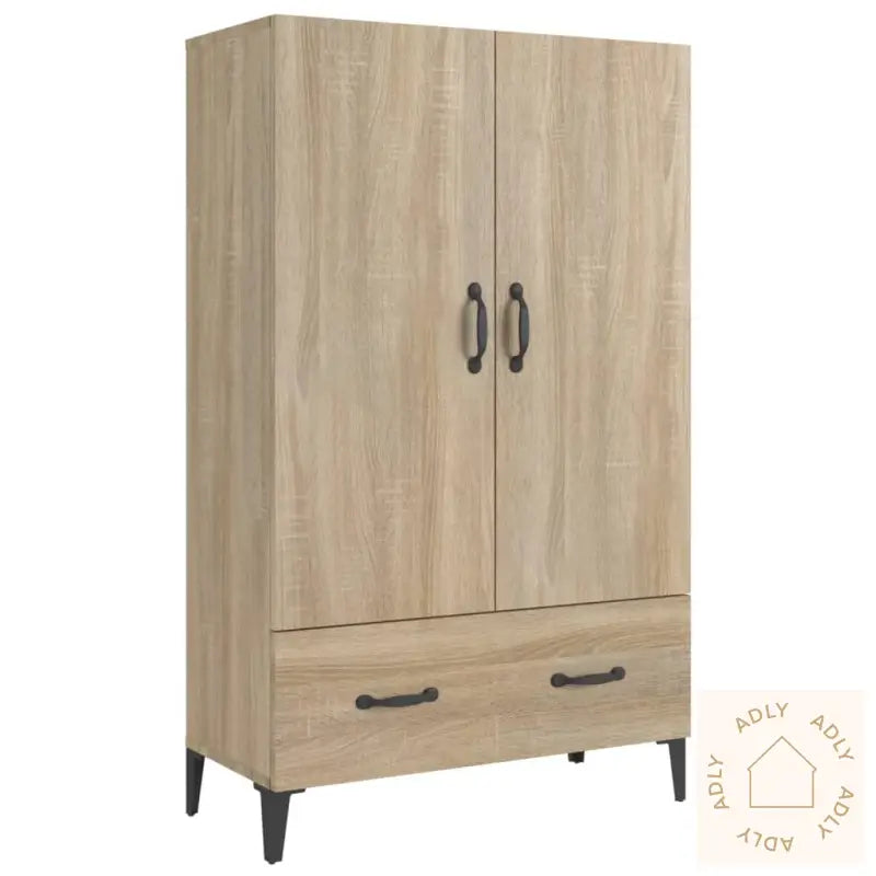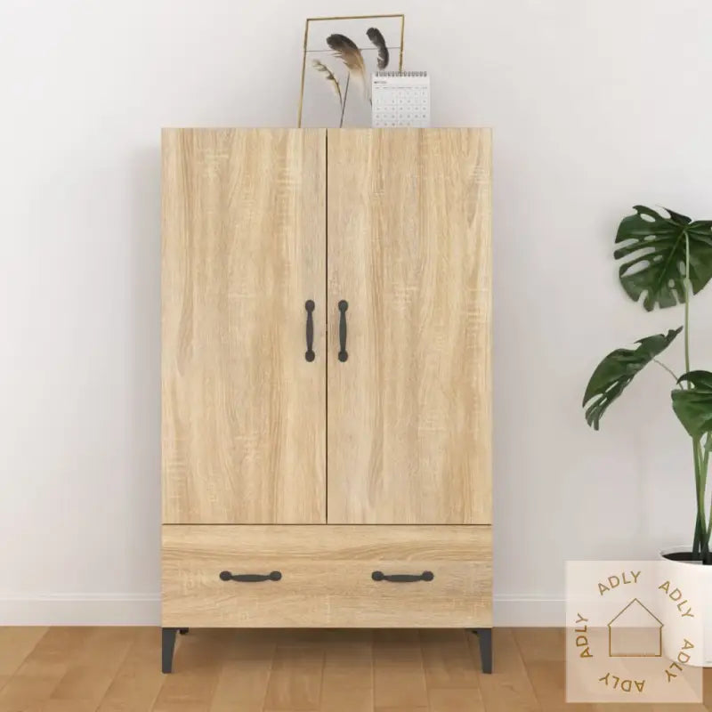 Dette praktiske og dekorative highboardet i sonoma eik gir hjemmet ditt et moderne og unikt preg. Med sitt stilrene design passer det perfekt sammen med andre møbler til hjemmet, og det er enkelt å plassere i ulike rom, enten du trenger ekstra oppbevaringsplass på stua, soverommet eller kontoret.