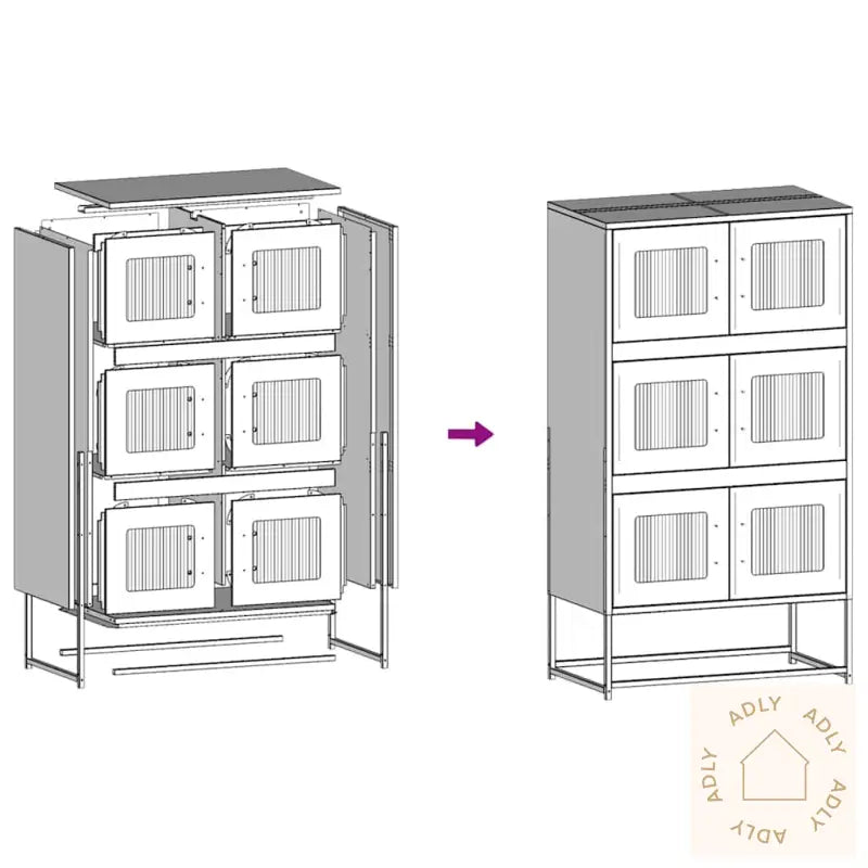 Robust og stabilt materiale: Det kaldevalsete stålet kjennetegnes av ekstra styrke og holdbarhet. Takket være produksjonsprosessen får du en jevn, elegant overflate og presisjon i alle detaljer, som gjør skapet ekstra slitesterkt – noe som er spesielt praktisk om du ser etter kvalitetsmøbler til hjemmet ditt.Rikelig med oppbevaringsplass: Med seks separate rom har du god plass til alt fra bøker og papirer til klær, elektronikk eller sesongbetonte gjenstander. Her får du mulighet til å organisere eiendelene dine og holde dem ryddige og lett tilgjengelige bak de heldekkende dørene.Praktisk dør: De solide dørene gir et rent uttrykk og sørger for at tingene dine holdes beskyttet, skjult og støvfrie, slik at du enkelt kan ta vare på både små og store saker i hverdagen.Fleksibel dørinstallasjon: Tilpass montering etter plasseringen hjemme hos deg – døren kan monteres enten til høyre eller venstre avhengig av hva som er mest praktisk og estetisk i rommet ditt.Praktiske håndtak: Håndtakene gjør det enkelt å åpne og lukke skapet samtidig som de gir en ekstra detalj til designet, slik at highboardet føles både komfortabelt og eksklusivt å bruke.Advarsel:
