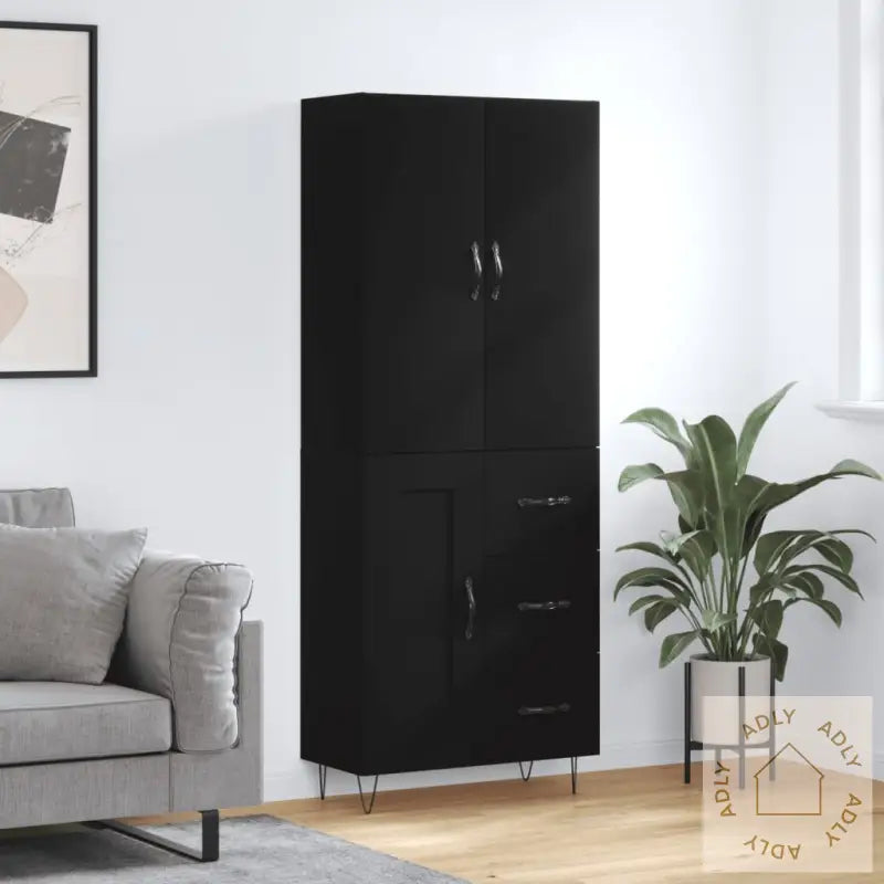 Slitesterkt materiale: Highboardet er laget av konstruert treverk med en jevn og elegant finish. Dette materialet er kjent for sin styrke, stabilitet og gode motstand mot fuktighet – perfekt for alle hjem som ønsker solide og holdbare møbler.God oppbevaringsplass: Skapet har rikelig med lagringsplass, noe som gjør det enkelt å holde hverdagslige ting organisert og lett tilgjengelig. Passer ypperlig til å oppbevare alt fra servise til bøker og øvrige nødvendigheter, og er godt egnet for deg som ser etter bokhyller og stående hyller med ekstra funksjon.Praktiske dører: Med dører kan du enkelt skjule små nødvendigheter og holde området ryddig. Alt blir lett å finne samtidig som det ikke samler seg rot i stuen eller gangen.Stabile metallføtter: Metallføttene gir ikke bare den karakteristiske rolige stilen, men sørger også for stabilitet og lang levetid på dette møbelet. Perfekt for et moderne eller industrielt interiør.Advarsel: