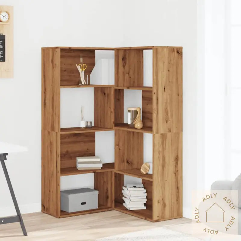 For å sikre stabilitet og trygg bruk må produktet festes med den medfølgende festeanordningen for å forhindre at det velter.Farge: artisan eikMateriale: konstruert treMål (hjørne): 85 x 85 x 140 cm (B x D x H)Mål (horisontalt): 140,5 x 30 x 140 cm (B x D x H)2 monteringsmåter: horisontalt og hjørne4-lags designMaks. lastekapasitet per hylle: 20 kgMontering kreves: ja