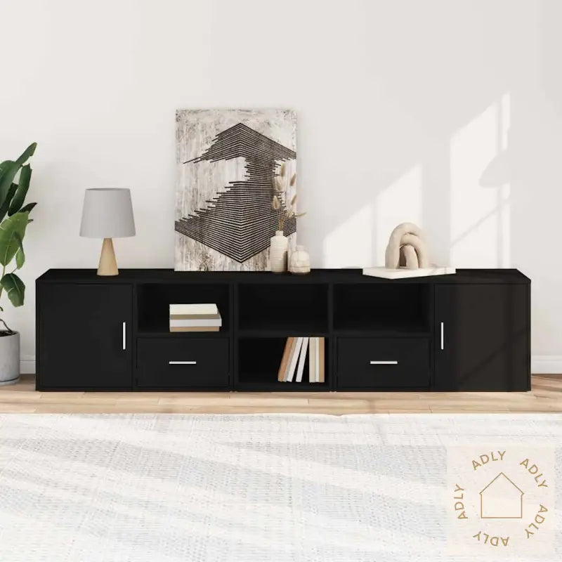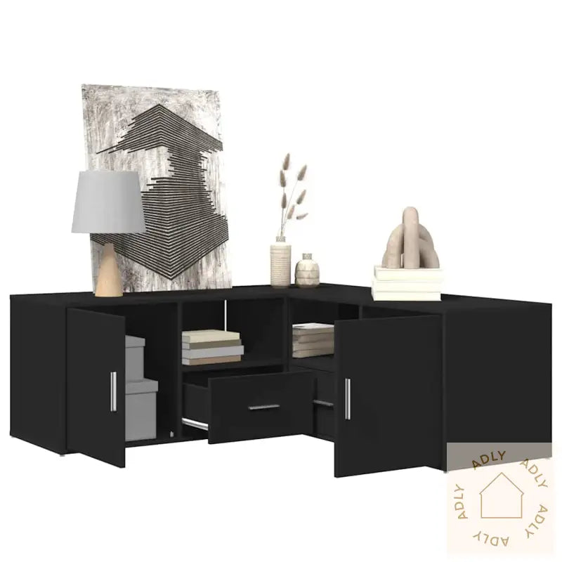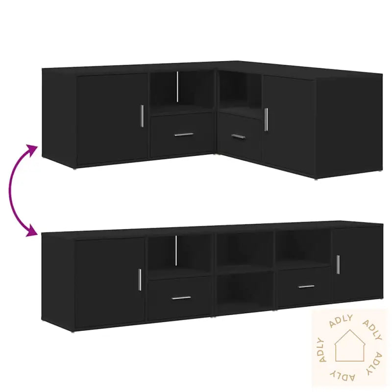 Holdbart materiale: Det konstruerte treverket har en solid konstruksjon og glatt overflate, noe som sikrer skikkelig kvalitet og lang holdbarhet. Det står stødig, er motstandsdyktig mot fuktighet og tåler litt av hvert, slik at du får et skap som ser pent ut lenge.Fleksibel montering: Du kan selv velge hvordan skapet skal plasseres – enten i hjørnet i et L-formet design for å utnytte plassen best mulig, eller horisontalt som et bredt skap. Dette gjør det enkelt å tilpasse skapet til dine behov og hvordan du har innredet med andre møbler.God lagringsplass: Skapet har både rom og skuffer, så du får god plass til blant annet bøker, dokumenter, klær, eller småting – alt etter hva du trenger. Med dette skapet holder du tingene dine samlet, lett tilgjengelig og ryddig.Solid overflate: Den robuste toppflaten gjør det enkelt å bruke skapet som et display for pynt, bilder eller planter, slik at du kan sette ditt personlige preg på rommet.Lett å holde rent: Overflatene er jevne og glatte, noe som gjør skapet lettvint å tørke av med en fuktig klut – perfekt om du ønsker møbler og hagemøbler som ikke krever mye vedlikehold.Farge: svartMateriale: konstruert treMål (horisontalt): 200 x 40 x 45 cm (B x D x H)2 monteringsmåter: horisontalt og hjørneMaks. lastekapasitet: 90 kgMontering kreves: ja