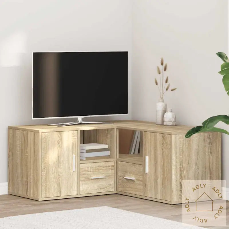 Dette hjørneskapet i sonoma eik med sitt enkle, men smarte design, er ikke bare funksjonelt—det skaper også et moderne blikkfang blant dine møbler til hjemmet.