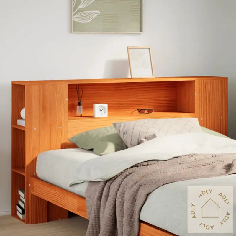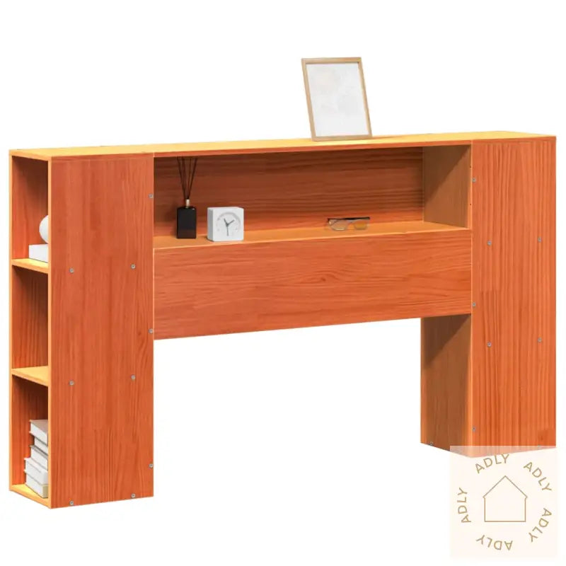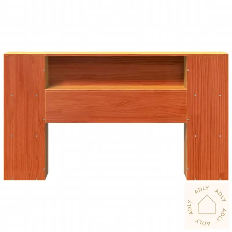 Stabil og langvarig ramme: Siden rammen består av solid heltre furu, får du et møbel som tåler daglig bruk og varer lenge, samtidig som det bevarer sitt flotte, rustikke preg. Den solide utførelsen gjør hodegavlen til en sikker og pålitelig del av hjemmets møbler.Rikelig med oppbevaringsplass: Med hele 7 smarte, romslige oppbevaringsrom integrert i hodegavlen, kan du enkelt organisere alt fra bøker til små hagemøbler eller dekor. Her kan du holde favorittbøkene, vekkerklokken og alt annet viktig lett tilgjengelig og samlet på ett sted.Plassbesparende: Denne funksjonelle hodegavlen er et genialt valg dersom du ønsker å frigjøre plass på soverommet. Med god oppbevaring i selve gavlen slipper du behovet for nattbord eller ekstra hyller, noe som gjør den ypperlig selv i små eller trange rom hvor hver kvadratmeter teller.Frittstående løsning: Takket være den frittstående konstruksjonen er hodegavlen enkel å flytte og plassere, uten at du trenger å montere den fast i veggen. Kjekt for deg som liker å endre på møbleringen og ønsker fleksibilitet blant møblene til hjemmet.Farge: voksbrun – en varm og tidløs nyanse som harmonerer flott med de fleste interiørstiler.Materiale: heltre furu, kjent for sin pålitelighet og naturlige tekstur.Mål: 206 x 24 x 82 cm (B x D x H), passer perfekt bak en vanlig dobbeltseng.Bredde egnet madrass: 140 cm.Innebygd oppbevaring som holder orden på rommet.Enkel montering kreves.