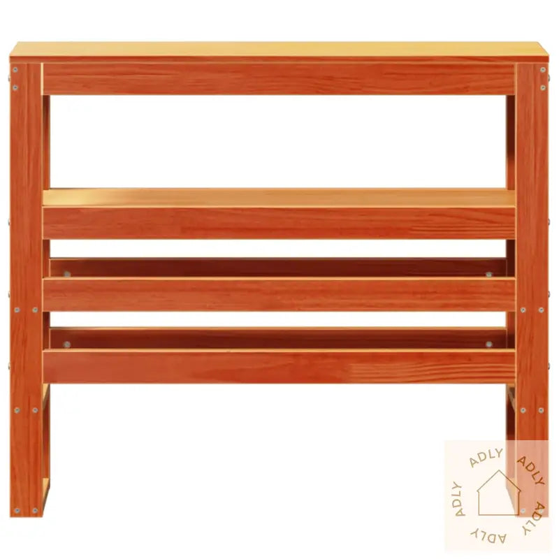 Stabil og langvarig ramme: Rammen er laget av heltre furu, et robust materiale kjent for sin eksepsjonelle styrke og lange levetid. De rette årringene og de naturlige kvistene gir et rustikt, sjarmerende preg som vil vare i mange år.Plassbesparende: Denne hodegavlen utnytter plassen maksimalt og kan erstatte et tradisjonelt nattbord. Perfekt for små soverom eller leiligheter, spesielt når du ønsker fleksible møbler til hjemmet som gir ekstra plass og funksjonalitet.Frittstående hodegavl: Du slipper komplisert montering på veggen – hodegavlen står stødig på egen hånd, og kan enkelt flyttes ved behov eller ommøblering. Du får dermed en brukervennlig og praktisk løsning.Farge: Voksbrun, en varm og naturlig nyanse som matcher det meste innen utendørsmøbler og hagemøbler om du ønsker en gjennomført stil hjemme.Materiale: 100% heltre furuMål: 106 x 19 x 82 cm (B x D x H)Bredde egnet madrass: 100 cmMed praktiske lagringshyller: Ideell for bøker, vekkerklokke eller annet du vil ha lett tilgjengelig ved sengen.Montering kreves: Ja, produktet leveres med enkel monteringsanvisning.