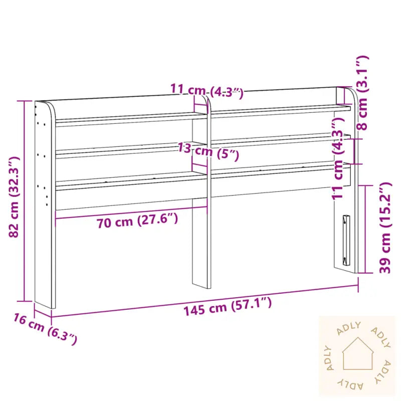 Stabil og langvarig ramme: Hodegavlen er laget av ubehandlet heltre furu, noe som gir en solid og stødig konstruksjon som tåler daglig bruk. Du får et slitesterkt møbel som holder seg pent år etter år.Rikelig med lagringsplass: De tre integrerte hyllene gjør det enkelt å organisere og oppbevare alt fra bøker og telefoner til vekkerklokke og dekor, slik at favorittgjenstandene dine alltid er innen rekkevidde rett ved sengen.Plassbesparende løsning: Med denne praktiske hodegavlen sparer du gulvplass siden de innebygde hyllene erstatter behovet for nattbord. Det gir en smartere og mer oversiktlig løsning, spesielt i mindre rom der plassen må utnyttes maksimalt.Frittstående design: Siden hodegavlen står stødig av seg selv slipper du bekymringer med veggmontering. Du kan plassere eller flytte den akkurat der du ønsker – helt uten verktøy eller inngrep i veggen.Materiale: heltre furu (ubehandlet) – solid og naturlig kvalitetMål: 145 x 16 x 82 cm (B x D x H)Bredde egnet madrass: 135 cmMed lagringshyller gir ekstra funksjonalitetMontering kreves: ja, enkel montering følger med instruksjoner