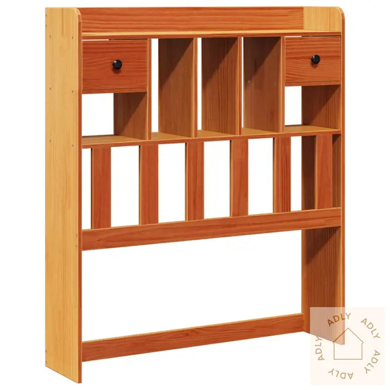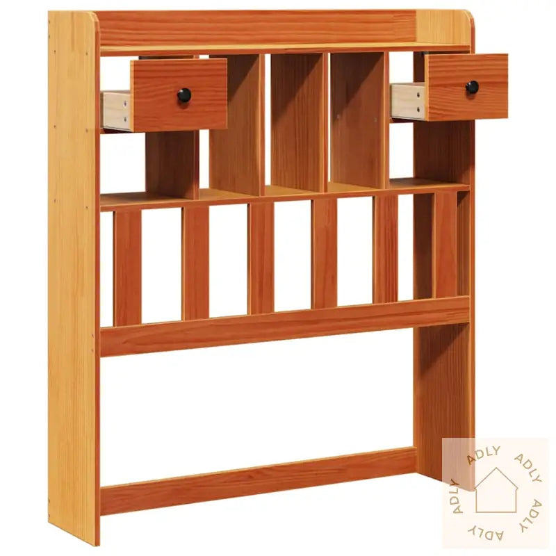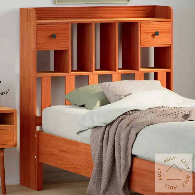 Stabil og langvarig ramme: Hodegavlen er laget i heltre furu, kjent for styrke, stabilitet og unike detaljer som gir ekte sjarm og karakter til rommet ditt.Rikelig med oppbevaringsplass: De tre åpne rommene og to skuffene gir deg god plass til å organisere bøker, vekkerklokke, ladere og andre nødvendigheter – alt lett tilgjengelig rett ved sengen. Dette gjør at du kan holde soverommet mer ryddig og oversiktlig.Plassbesparende: Hodegavlen fungerer også som et smart alternativ til tradisjonelle nattbord, og hjelper deg med å utnytte plassen optimalt – spesielt hvis du har begrenset areal. Perfekt for små leiligheter eller hybler hvor det gjelder å tenke praktisk.Frittstående løsning: Den fristående konstruksjonen gir deg fleksibilitet til enkelt å plassere eller flytte hodegavlen etter behov, uten at du må montere den på veggen eller lage hull. Praktisk og bekymringsløst!Farge: voksbrun for et tidløst, lunt uttrykkMateriale: slitesterk heltre furuMål: 106 x 23 x 110 cm (B x D x H)Bredde egnet madrass: 100 cmMed oppbevaringsrom og 2 praktiske skufferMontering kreves
