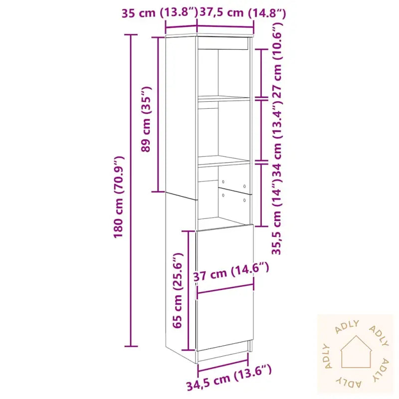 Stabilt og slitesterkt materiale: Konstruert tre sørger for et solid og skikkelig skap du kan stole på lenge. Materialet er kjent for sin jevne overflate og evne til å motstå fuktighet, vridning og sprekker, perfekt for daglig bruk i ulike rom.Rikelig med oppbevaringsplass: Her får du fem hyller og god plass til å organisere alt fra servise og hygieneartikler, til bøker, spill eller tekstiler. Hold tingene dine oversiktlige og lett tilgjengelig, enten skapet brukes som bokhylle, kjøkkenskap, baderomsskap eller annet stående oppbevaringsmøbel.Fleksibel dørinstallasjon: Tilpass skapet til rommet ditt – monter døren akkurat der det passer deg best, enten på venstre eller høyre side.Allsidig bruk: Dette elegante highboardet glir rett inn i stuen, på kontoret, i gangen eller på soverommet, i tillegg til kjøkken og bad. Med sitt tidløse design fungerer det like godt sammen med andre møbler og hagemøbler.Lettstelt og praktisk: Skapets glatte overflate gjør rengjøringen enkel – bare tørk av med en fuktig klut så ser det alltid ryddig ut med minimalt vedlikehold.Advarsel: