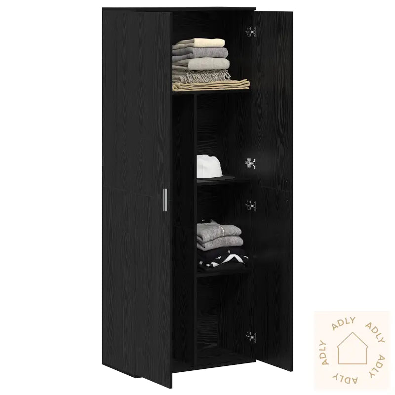 God plass: Fire separate rom gir deg rikelig med oppbevaringsmuligheter til både bøker, pyntegjenstander, dagligvarer eller annet tilbehør du vil ha lett tilgjengelig. Perfekt når du ønsker både moderne stil og funksjon i ett og samme møbel.Moderne stil: Den elegante, svarte eiklooken og den teksturerte finishen gir høybordet et moderne preg som matcher de fleste hjem. Det passer sømløst inn sammen med annen innredning og gjør det enkelt å skape et helhetlig uttrykk.Justerbare hyller: Fire justerbare hyller lar deg enkelt tilpasse oppsettet til både høye og lave gjenstander. Tilpass oppbevaringen etter behov slik at alt får sin egen plass, noe som gir ekstra fleksibilitet og orden i hverdagen.Sikkerhet: For økt trygghet kan skapet festes til veggen, så du unngår at det velter – ekstra viktig for barnefamilier eller deg som har kjæledyr hjemme.Kvalitetsmateriale: Konstruert av robust og slitesterkt tremateriale, designet for å holde seg pent lenge. Den eksklusive teksturerte overflaten ser bra ut og er lett å vedlikeholde år etter år.Antall deler: 2Farge: SvartForm: RektangulærMateriale: Konstruert treFinish: TeksturertKun for innendørs brukAntall dører: 4Deksel inkludert: NeiPasser til: StueMontering inkludert: Vegg- eller takfester (spesifikke skruer/plugger følger ikke med)Overflatehøyde: 2 cmStige: NeiLevering inneholder: SkapMontering kreves: JaAnbefalt antall personer for montering: 2