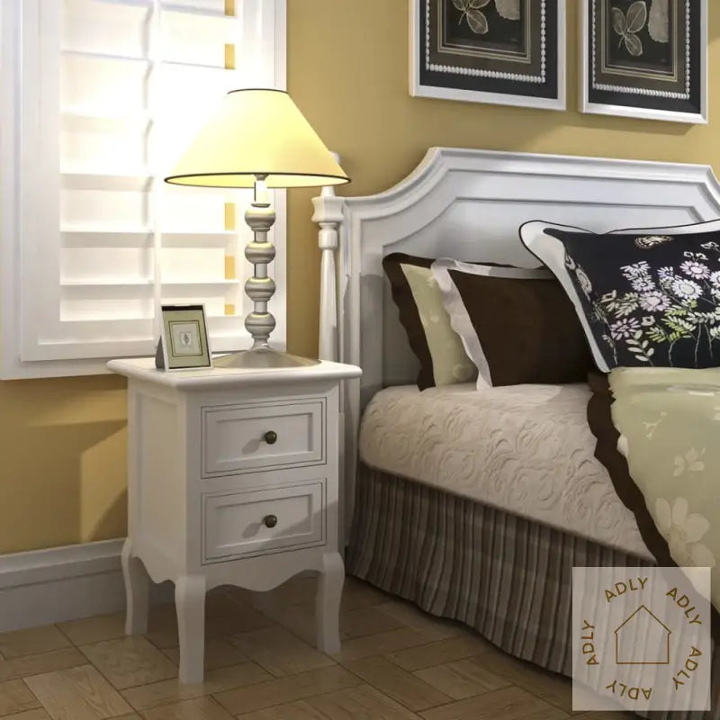 Dette hvite nattbordet med to skuffer gir rommet et moderne og stilrent uttrykk, og passer perfekt inn blant andre møbler til hjemmet. Den solide trekroppen av MDF og børstet furu sørger for god kvalitet og stabilitet, så du får en løsning som tåler daglig bruk. Med sine praktiske skuffer har du alltid plass til oppbevaring av bøker, telefon og andre nødvendigheter ved sengen, slik at soverommet holdes organisert og ryddig.