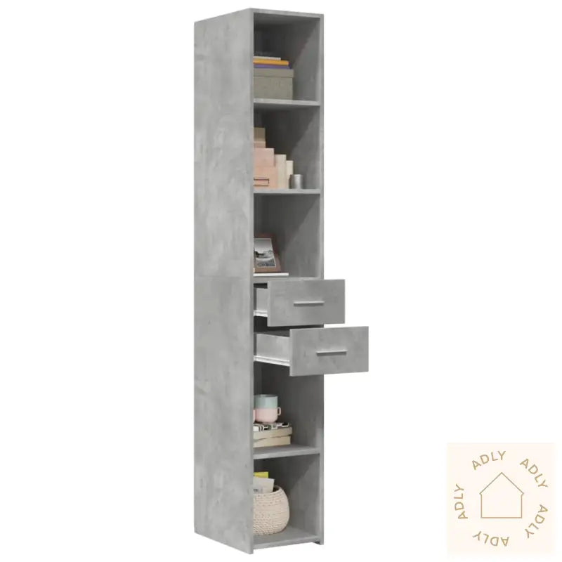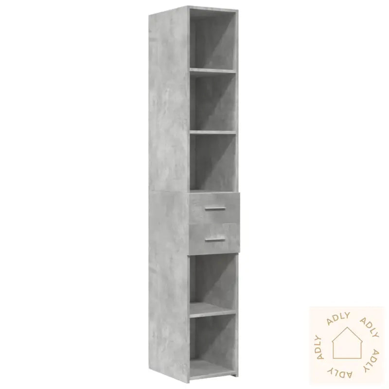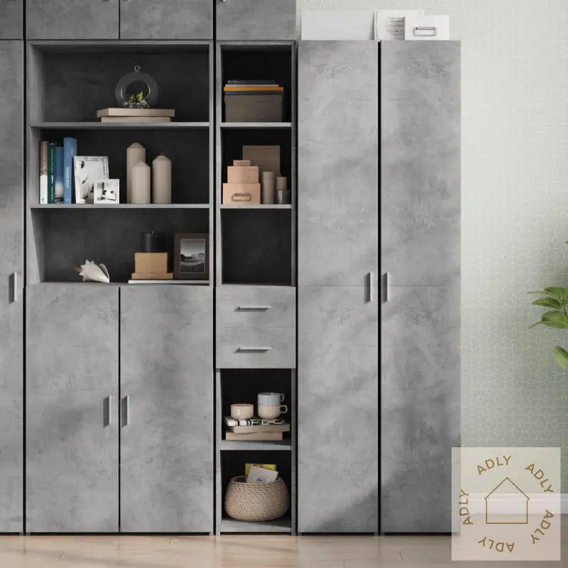 Skruer og plugger for veggmontering følger ikke med. Vi anbefaler å bruke monteringsutstyr tilpasset din veggtype. Er du usikker, ta kontakt med fagperson før montering, og følg instruksjonene nøye for et trygt resultat.Farge: betonggråMateriale: konstruert treMål: 30 x 42,5 x 185 cm (B x D x H)Montering kreves: jaLegal Documents: