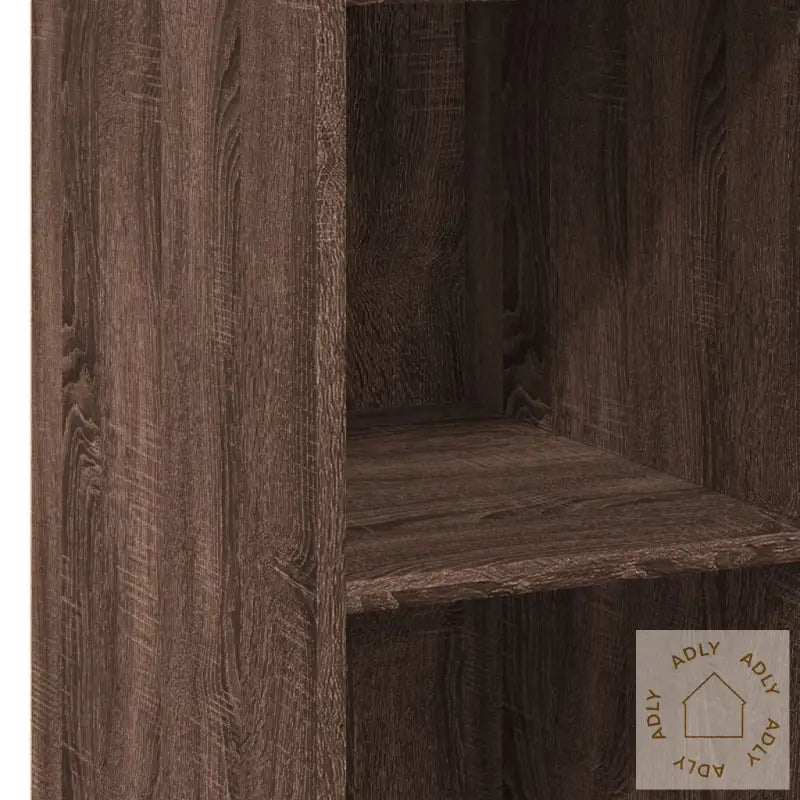 Holdbart materiale: Skapet er laget av konstruert tre, kjent for sin slitestyrke og stabile konstruksjon. Den glatte overflaten bidrar ikke bare til et flott utseende, men gjør også skapet svært motstandsdyktig mot fukt og hverdagens slitasje.Rikelig med oppbevaringsplass: De smarte hyllene gir deg masse plass til alt fra bøker og pyntegjenstander til viktige dagligvarer. Dette gjør det enkelt å holde stuen, soverommet eller kontoret ryddig og funksjonelt.Enkel å rengjøre: Den glatte finishen gjør at du raskt kan tørke av skapet med en fuktig klut, noe som gjør vedlikeholdet superenkelt og krever minimal innsats.Tidløs design: Med sitt minimalistiske uttrykk og rette linjer passer denne oppbevaringshyllen til de fleste interiørstiler. Brun eik fungerer harmonisk sammen med både tradisjonell og moderne hjeminnredning.Advarsel: