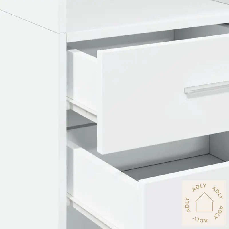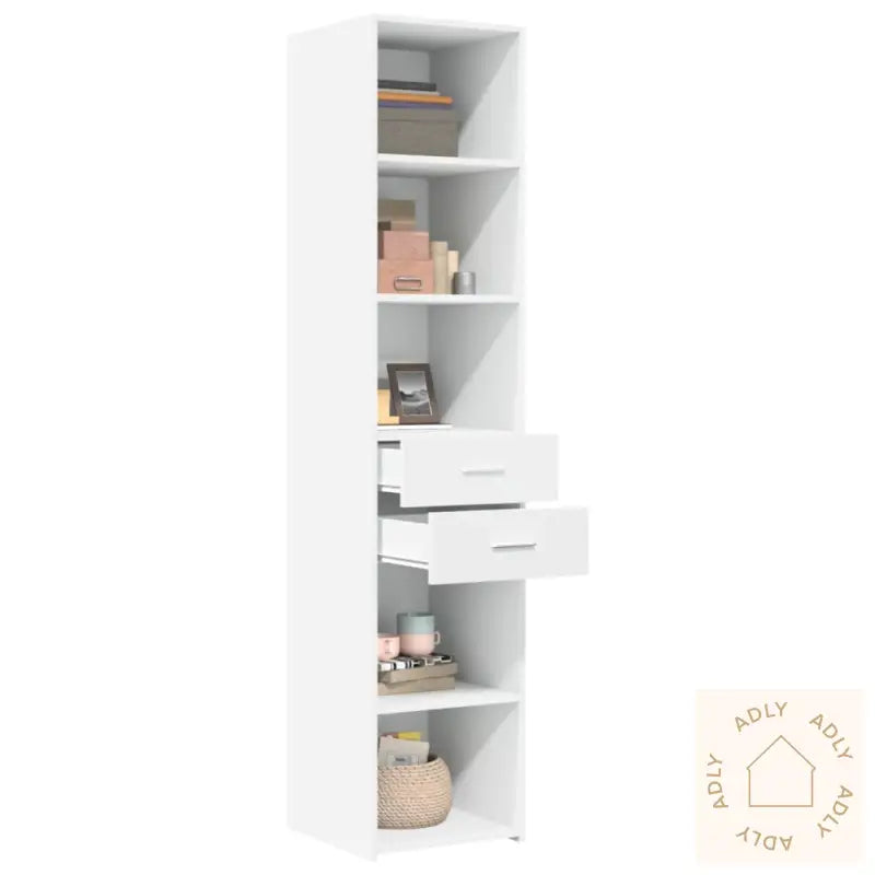 Holdbart materiale: Highboardet er laget av konstruert treverk av høy kvalitet, noe som gir det en jevn og elegant finish. Materialet er kjent for sin styrke og stabilitet, og tåler daglig bruk samtidig som det har god motstand mot fuktighet – ideelt for norske forhold.Rikelig med oppbevaringsplass: Med sine smarte hyller får du rikelig plass til å organisere og oppbevare alt fra bøker og personlige eiendeler til dekorative gjenstander. Dette gjør det enkelt å holde hjemmet både ryddig og oversiktlig, med alt du trenger lett tilgjengelig.Enkel å rengjøre: Skapet krever lite vedlikehold, og overflaten kan raskt vaskes ren med en fuktig klut – praktisk i en travel hverdag når man ønsker å holde møblene fine og hygieniske.Tidløs design: Det minimalistiske uttrykket og de rene linjene gir oppbevaringshyllen et tidløst moderne preg, slik at den passer sømløst inn sammen med andre møbler eller hagemøbler. Den hvite fargen tilfører lys og en følelse av romslighet til hjemmet ditt.Advarsel:
