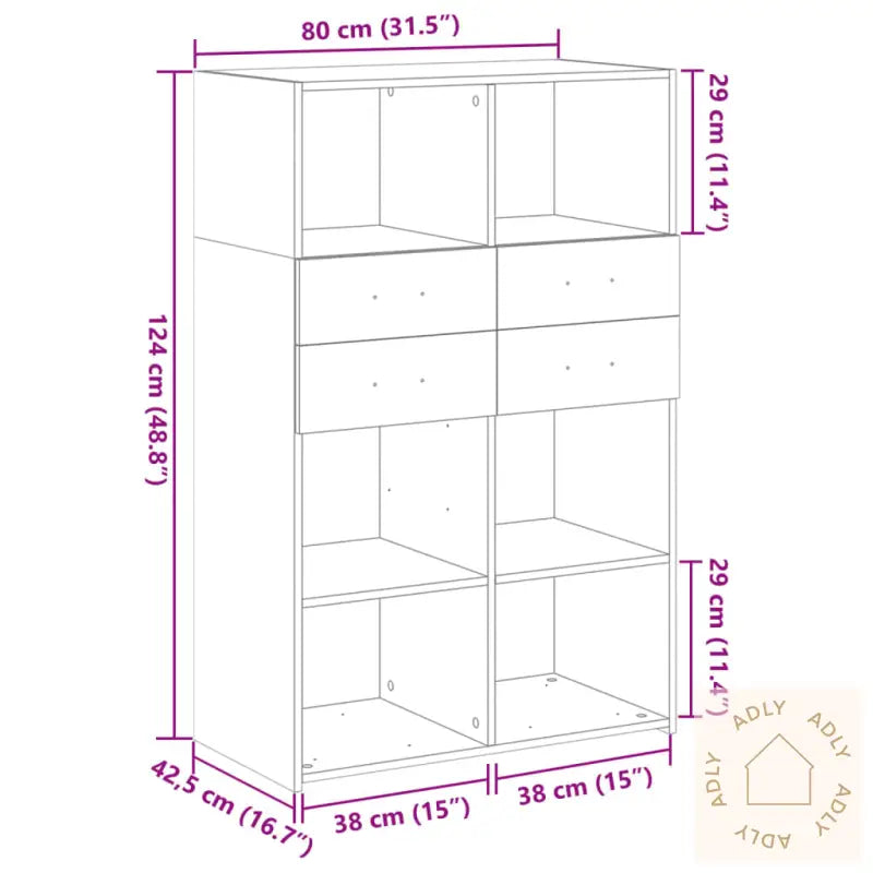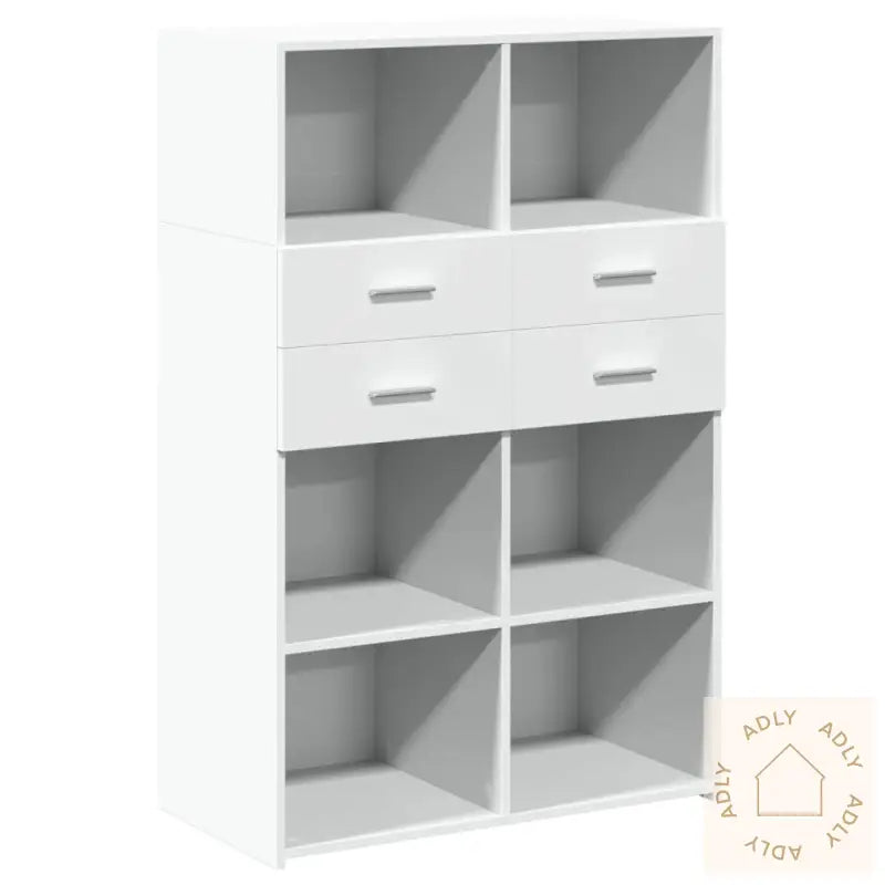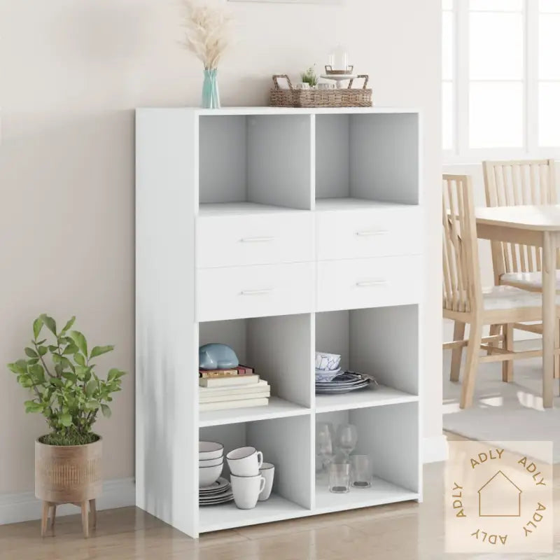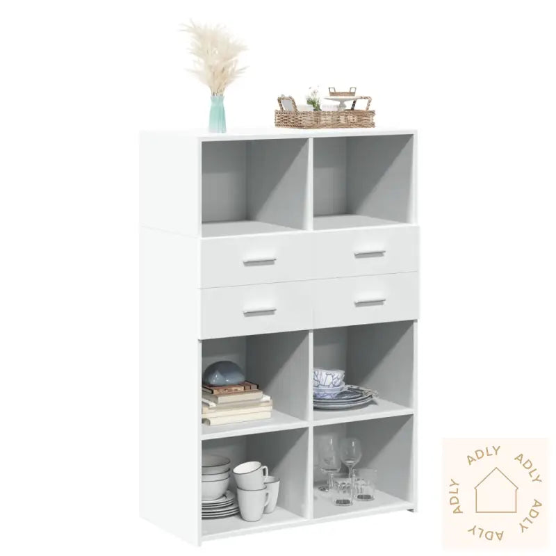Holdbart materiale: Skapet er laget av førsteklasses konstruert tre, noe som gir det en glatt og moderne finish. Materialet er både robust og stabilt, og tåler daglig bruk samtidig som det har god motstand mot fuktighet – praktisk for nordiske hjem hvor man ofte veksler mellom ute- og innemiljø.Brukervennlig design: Med solide håndtak på dørene er oppbevaring enkelt og tilgjengelig. Håndtakene gir også ekstra designpreg som gjør highboardet til et blikkfang blant dine andre møbler.God plass til oppbevaring: Dette highboardet har både åpne hyller og skapdører, slik at du kan organisere alt fra servise og bøker til dekor og småting. Perfekt når du vil holde hjemmet ryddig og samtidig ha det du trenger lett tilgjengelig.Lettstelt: Skapets glatte overflate gjør vedlikehold superenkelt – bare bruk en fuktig klut for å tørke av støv og flekker. Egner seg spesielt godt for deg som ønsker hygieniske løsninger med lite vedlikehold i dine møbler.Allsidig i bruk: Takket være det rene designet og de praktiske løsningen passer dette highboardet inn overalt – på soverommet, i stua, gangen eller selv i garasjen. Det er lett å matche sammen med andre typer møbler til hjemmet og utendørsmøbler fra vårt sortiment.Advarsel: