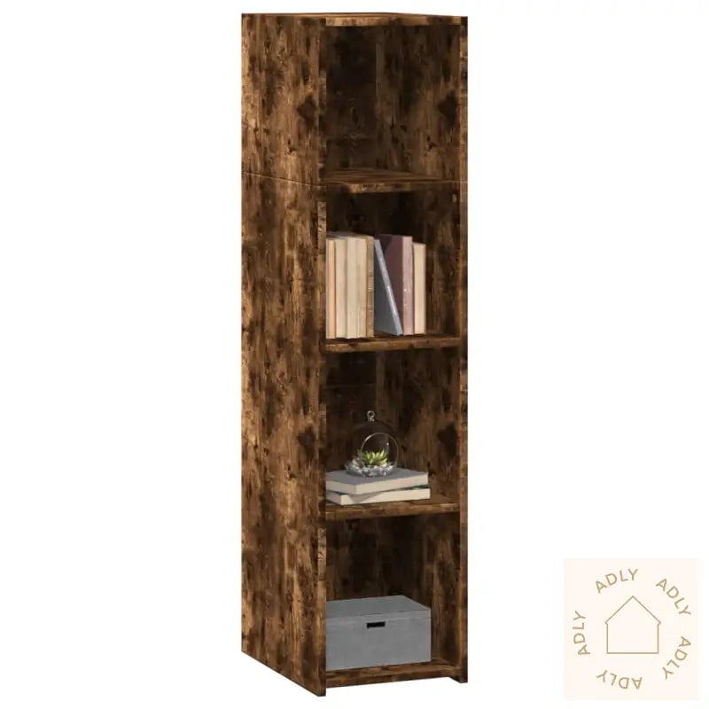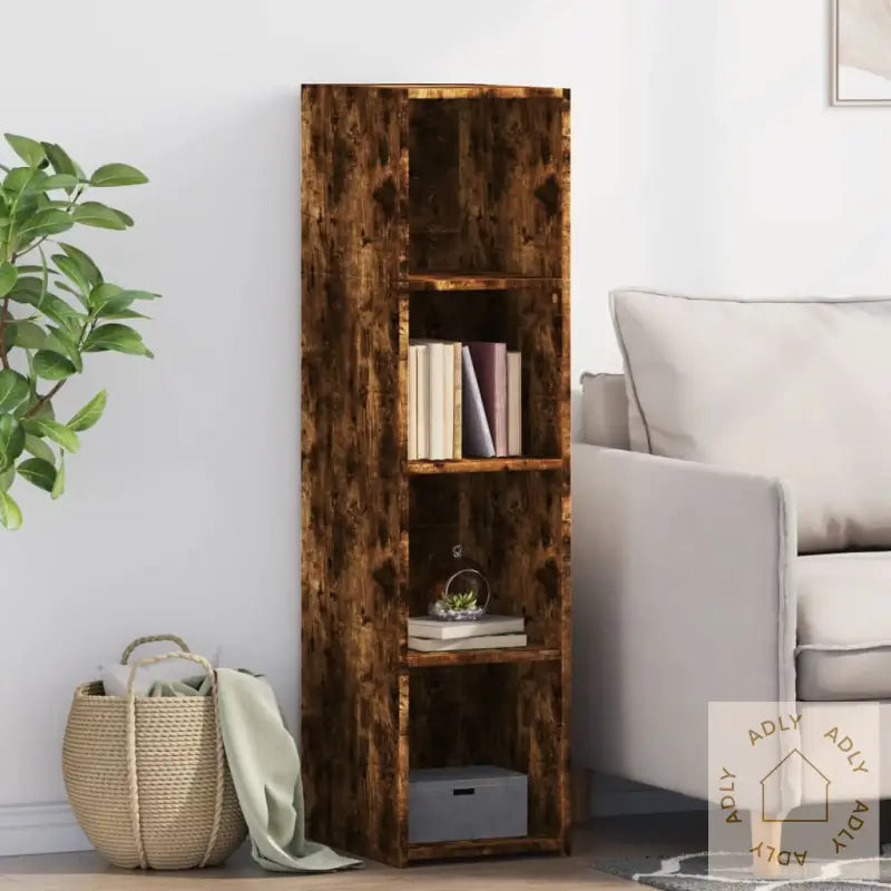 Holdbart materiale: Det konstruerte treet av høy kvalitet gir en glatt overflate og sørger for god styrke, stabilitet og fuktbestandighet. Du får et møbel som tåler daglig bruk og varer lenge.Rikelig med oppbevaringsplass: Denne bokhyllen og stående hyllen gir deg masse plass til bøker, dekor, viktige papirer eller andre ting du ønsker å holde organisert og lett tilgjengelig. Perfekt for deg som liker orden i hjemmet!Enkel å rengjøre: Overflaten på skapet er lett å holde pen – bruk bare en fuktig klut ved behov, så ser det ut som nytt. Praktisk for en hektisk hverdag hvor vedlikehold bør gå raskt.Tidløs design: Oppbevaringshyllen har elegante, rette linjer og et minimalistisk preg som gir hjemmet ditt en moderne og tidløs stil. Denne løsningen passer inn i de fleste interiør og kombineres enkelt med dine andre møbler.Advarsel: