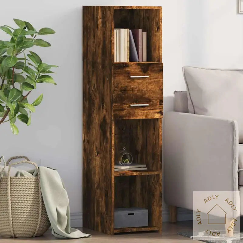 Holdbart materiale: Det konstruerte treverket har en glatt overflate som er både solid og fuktbestandig. Materialet gir skapet lang levetid og sørger for at det tåler daglig bruk i hjemmet ditt.Rikelig med oppbevaringsplass: Med god plass på hyllene får du systematisert alt fra bøker og dekor til andre småting. Dette gjør det enkelt å holde stuen, kontoret eller soverommet organisert – perfekt om du ønsker smarte og plasseffektive møbler.Enkel å rengjøre: Skapet kan raskt tørkes over med en fuktig klut, så vedlikeholdet blir minimalt, og hverdagen mer praktisk.Tidløs design: De slanke, rette linjene og det minimalistiske uttrykket gir møbelet et klassisk og stilrent preg. Dette gjør at highboardet passer lett inn sammen med andre møbler og stiler, noe som gir hjemmet ditt et tidløst moderne løft.Advarsel: