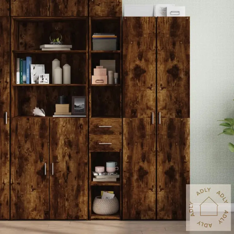 Holdbart materiale: Highboardet er laget av konstruert tre i svært god kvalitet. Overflaten er glatt og motstandsdyktig mot fuktighet, noe som gjør det solid, stabilt og slitesterkt. Perfekt for deg som ønsker robuste møbler som varer lenge, enten inne eller som en del av din møbelsamling sammen med for eksempel hagemøbler.Rikelig med oppbevaringsplass: Med flere hyller får du godt med plass til bøker, pyntegjenstander, dokumenter eller andre ting du vil ha organisert og lett tilgjengelig. Du får en smart måte å holde hjemmet ryddig på, samtidig som du har alt du trenger innen rekkevidde.Enkel å rengjøre: Overflatene på skapet kan lett tørkes av med en fuktig klut. Dette gir mindre behov for vedlikehold, slik at det alltid ser rent og pent ut uten mye innsats.Tidløs design: Med sitt minimalistiske og elegante uttrykk skaper denne oppbevaringshyllen et moderne og tidløst look. De rene linjene gjør at den enkelt kan matches med øvrige møbler eller utendørsmøbler, og den passer like godt inn i klassiske som moderne interiører.Advarsel:
